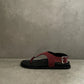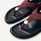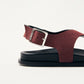 סנדלים לנשים מבית המותג אלוהס. סנדל אצבע שטוח, עם רצועת עור זמש רחבה וטבעת כסופה במרכז ואבזם סגירה בצד.