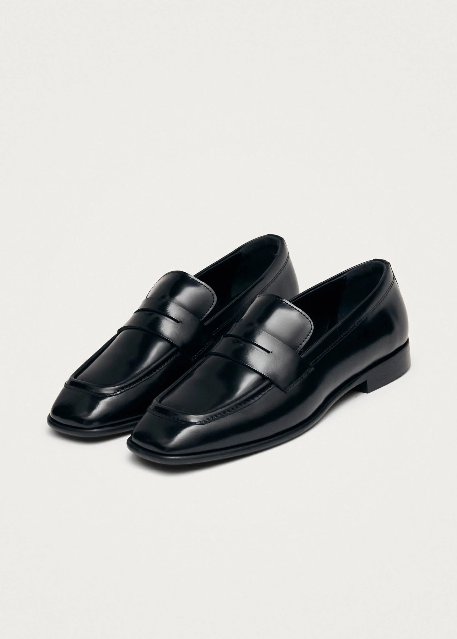 מוקסינים לנשים מבית המותג אלוהס, בעיצוב קלאסי ונקי בגוון שחור מבריק.