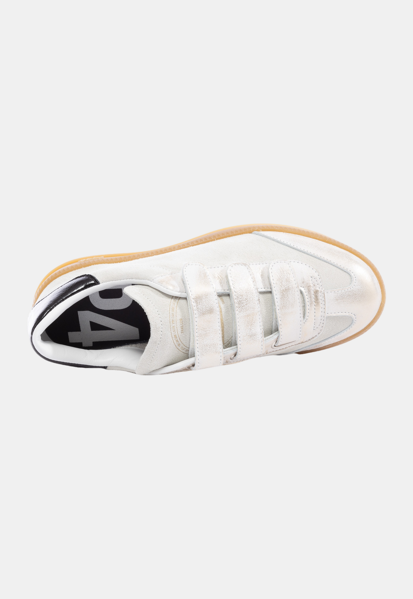 סניקרס לנשים מבית מותג הנעליים P448. בגזרה חדשה עשויה זמש, עם סוליית דבש וסגירת סקוצ'ים. בשילוב עור בחלק האחורי בצבע שחור, עם לוגו המותג.