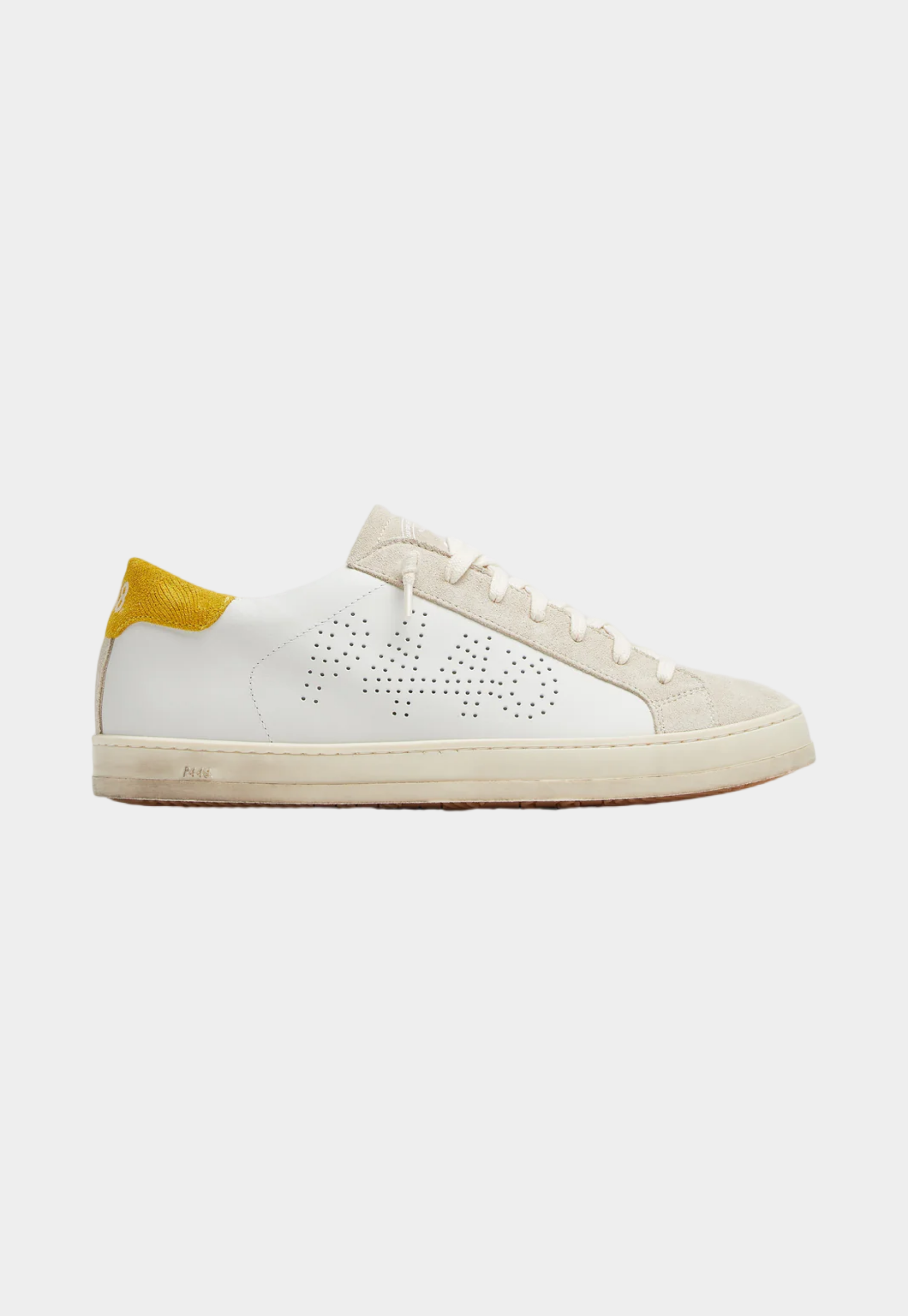 סניקרס לגברים מבית המותג P448. הכירו את גזרת John, הגזרה הקלאסית והאהובה של המותג. בדגם עם טוויסט עשוי בד משופשף, בשילוב שרוכים בצבע אפור תואם. החלק האחורי עשוי עור, עם לוגו של המותג.