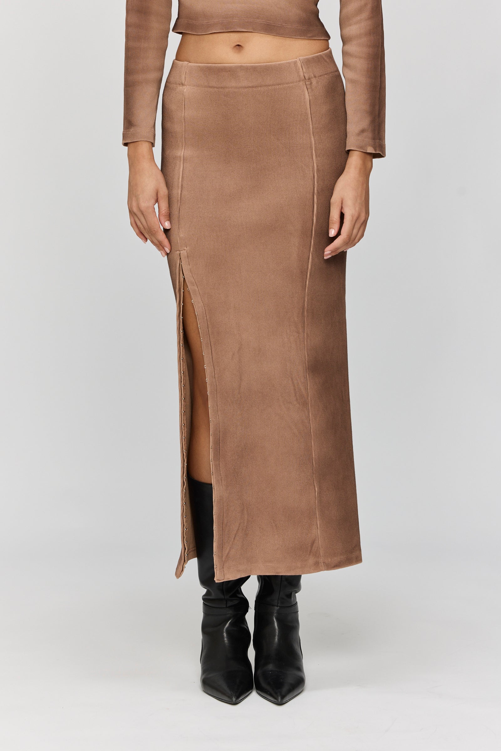 בגזרה צמודה, עם גומי במותן ושסע צדדי.