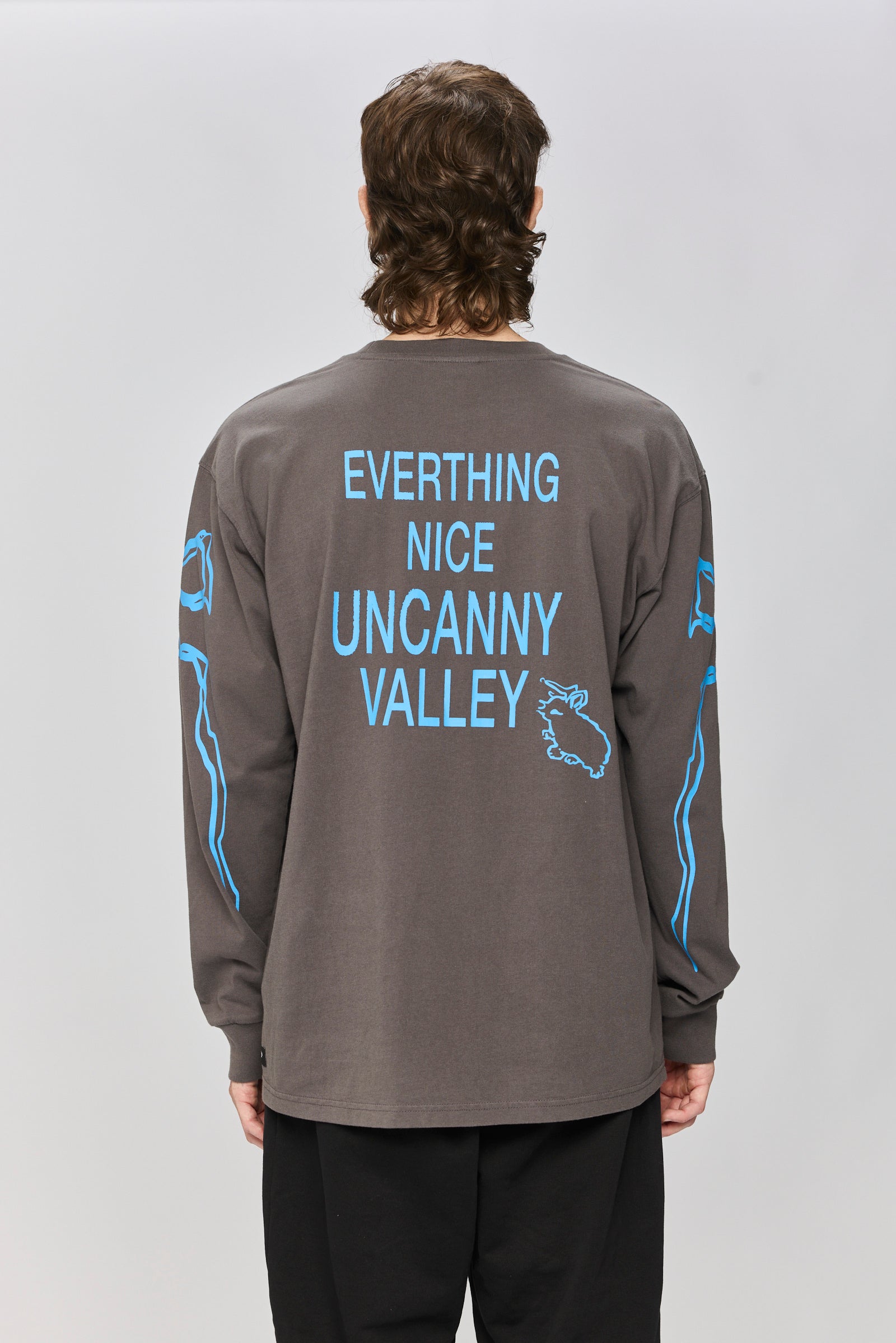 בגזרת אוברסייז, עם מפתח עגול, שרוולים ארוכים, בד כותנה איכותי, 100% כותנה, אינו מתכווץ בכביסה ושומר על צורתו. בשילוב הדפס קטן בחזית, בגב ובשרוולים.