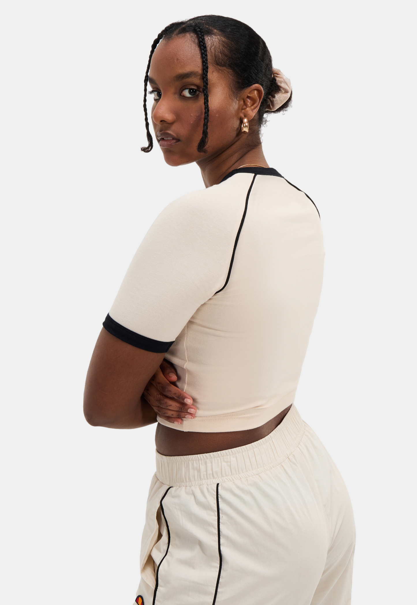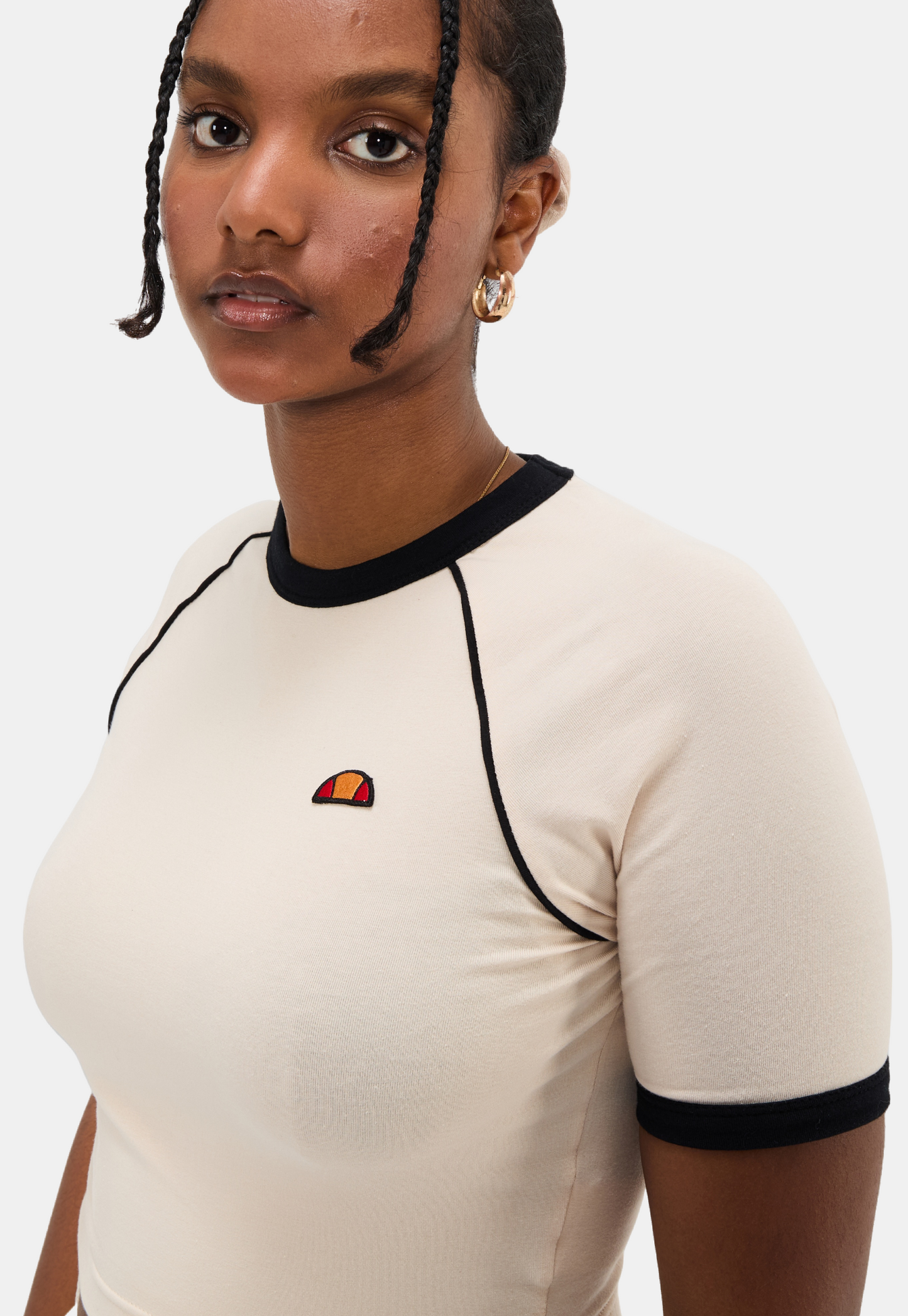 טי שירט קצרה לנשים מבית המותג אלס. בגזרת קרופ, צמודה עם מפתח עגול ושרוולים קצרים.