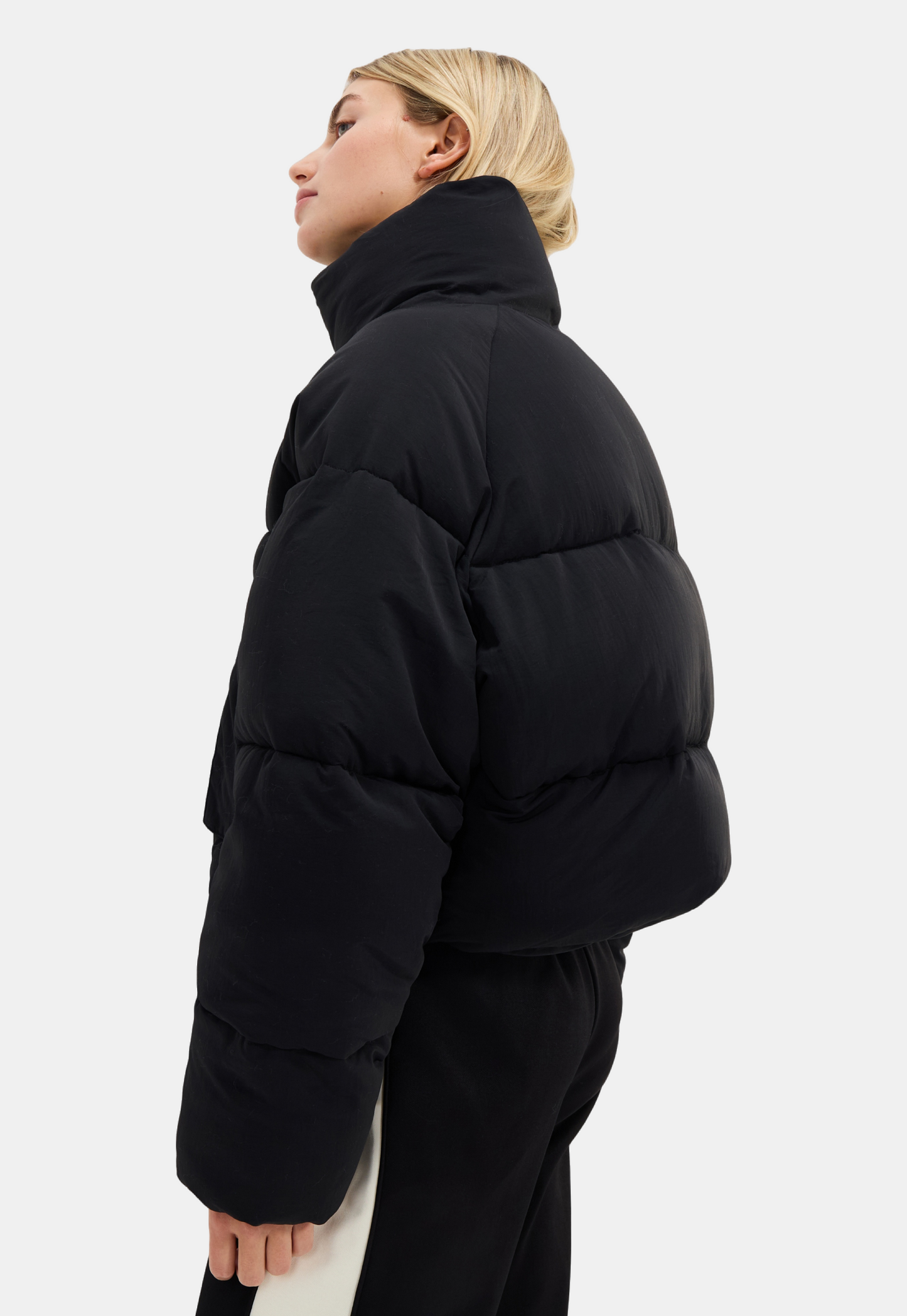 מעיל לנשים מבית המותג אלס. גזרת קרופ, רוכסן סגירה, צווארון ארוך ושני כיסים קדמיים. סיומת המעיל עם שרוך מתכוונן.
