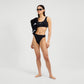 תחתוני בגד ים לנשים מבית המותג אלס בגזרה גבוהה, עם פס רחב במותן. בשילוב לוגו המותג בצד המותן.