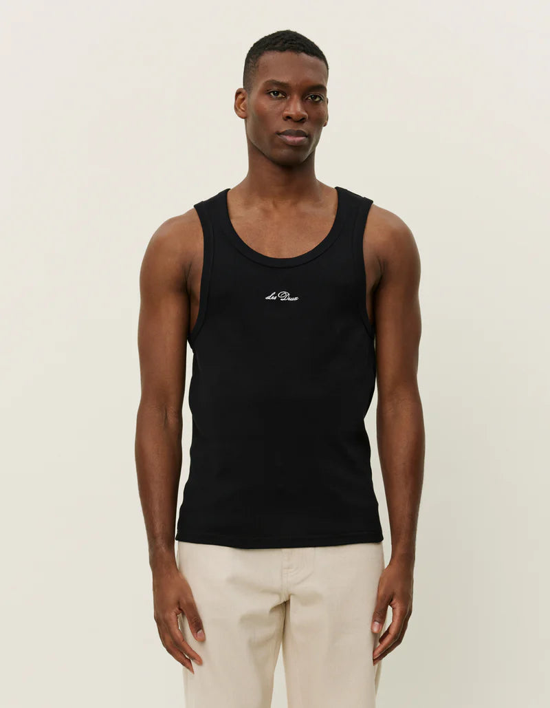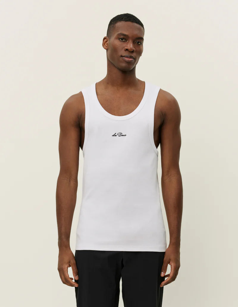 גופיה לגברים מבית המותג לה דו. בגזרה צמודה, מפתח עגול בשילוב פאץ' עם לוגו המותג בסיומת הגופייה.