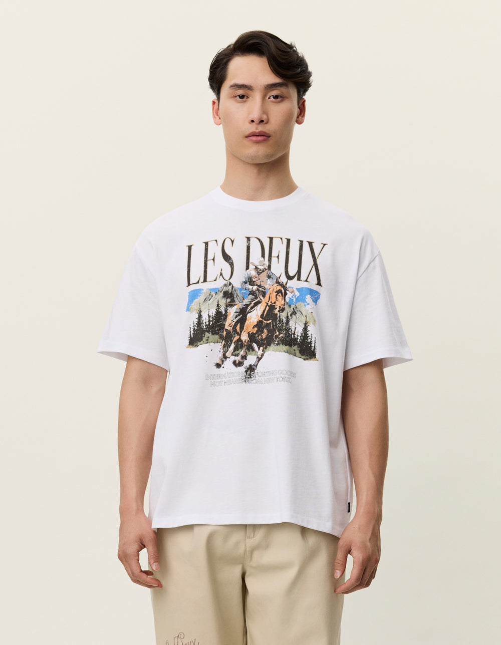 טי שירט קצרה לגברים מבית המותג לה דו, בעיצוב יומיומי עם הדפס בהשראה מערבית.
