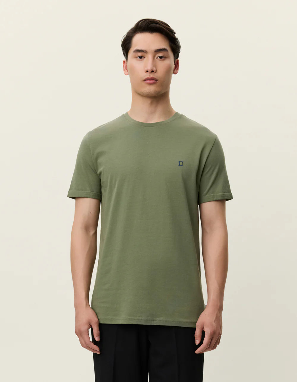 הדגם בגזרת Slim מחמיאה, עם צווארון עגול ותפר כתף קלאסי. השרוולים עם קיפול תפוס מעניקים מראה מוקפד וקליל, ורקמת לוגו קטנה בחזה מוסיפה נגיעה מזוהה ועדינה.
