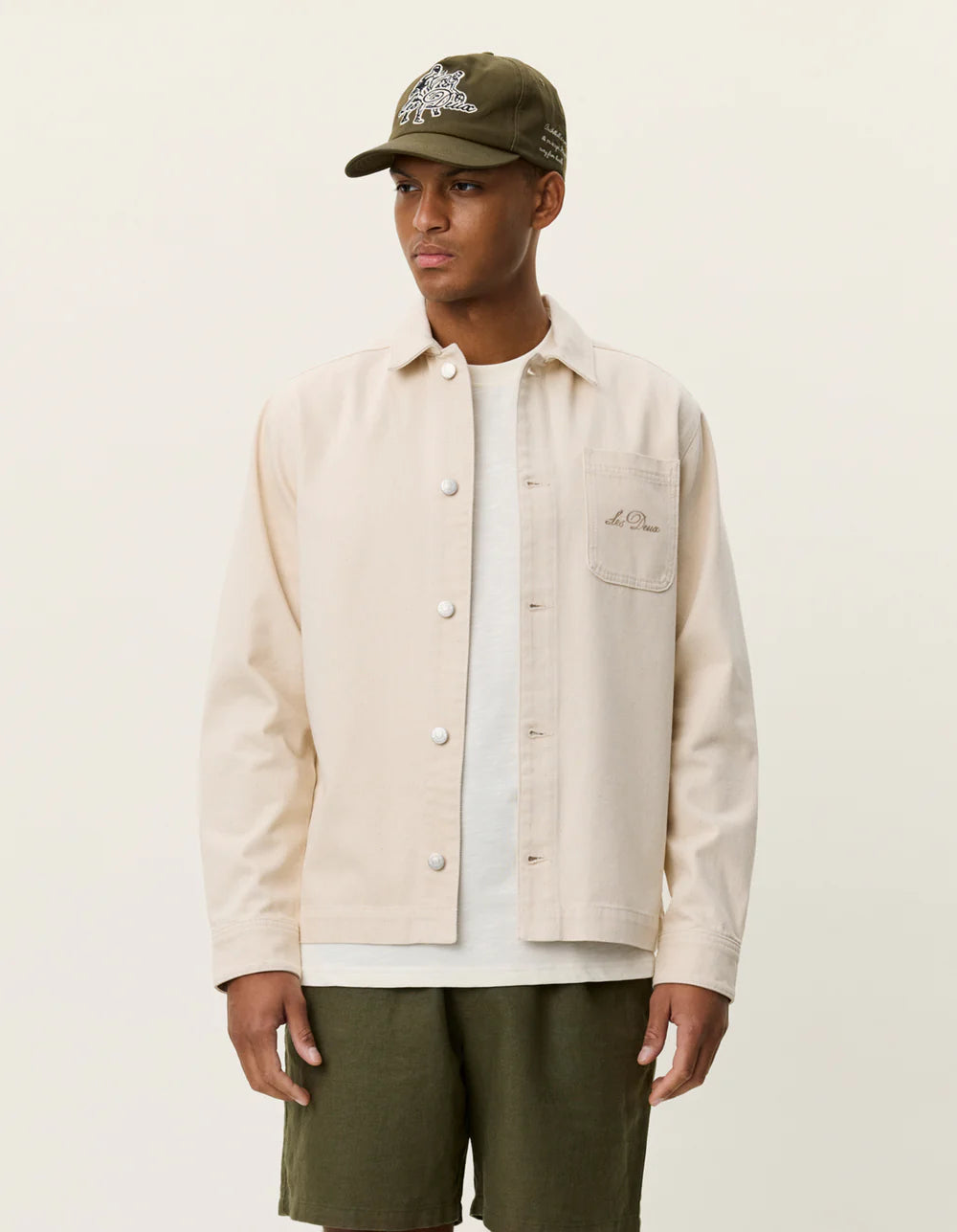 חולצה מכופתרת ארוכה לגברים מבית המותג LES DEUX, בגזרה רגילה, בעיצוב נקי בחזית עם גרפיקת קולקציה בולטת בגב. הדגם עשוי אריגת טוויל מכותנה אורגנית וכולל סגירת כפתורים קדמית, רקמה על כיס החזה וחפתים מתכווננים לנוחות והתאמה אישית.