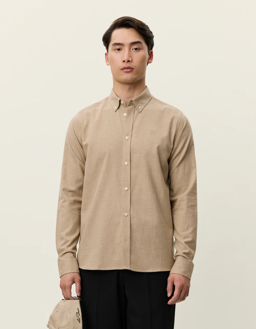 הדגם בגזרה רגילה ומאוזנת, עם צווארון מכופתר, רקמת לוגו קטנה בחזה וסגירת כפתורים מלאה. הבד הרך בגימור מוברש מעניק תחושה נעימה על הגוף, והסילואטה הקלאסית שומרת על מראה מסודר ולא מתאמץ.