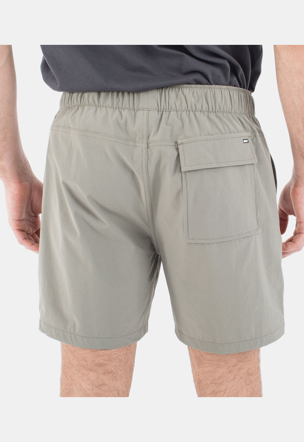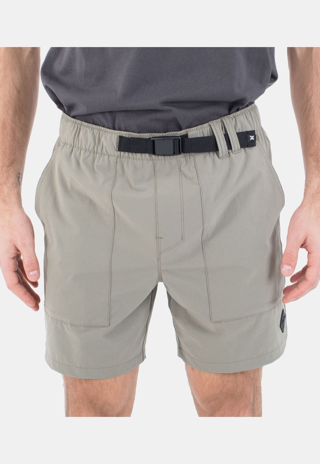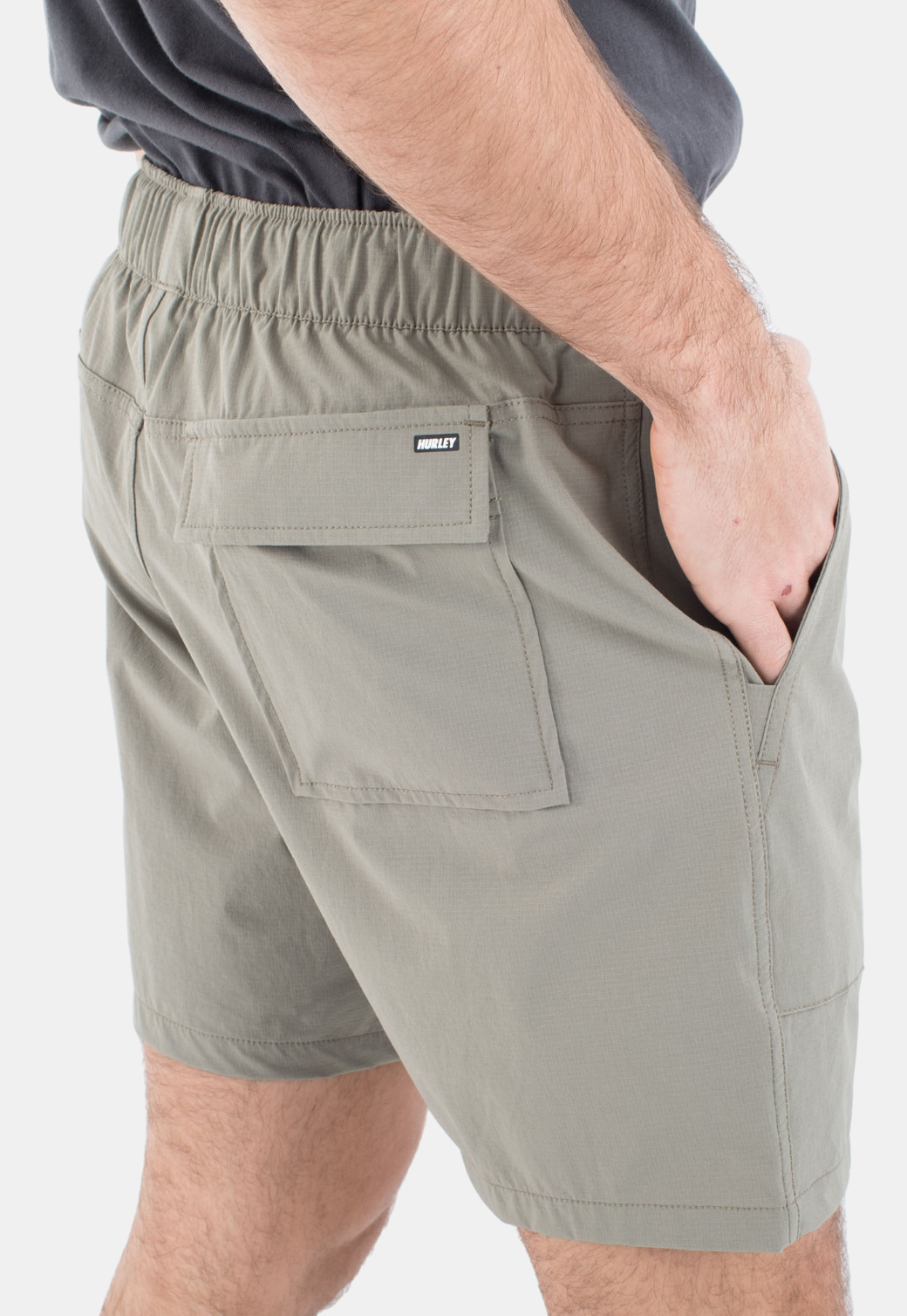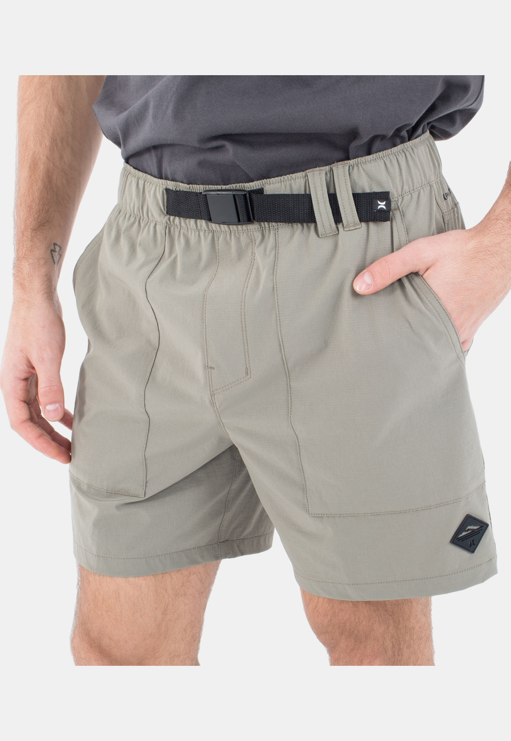 מכנסיים קצרים לגברים מבית המותג הארלי. בגזרה נינוחה עם גומי במותן וחגורה בסגירת אבזם. עם שני כיסים קדמיים ואחוריים. אורך המכנסיים 17 אינץ'.