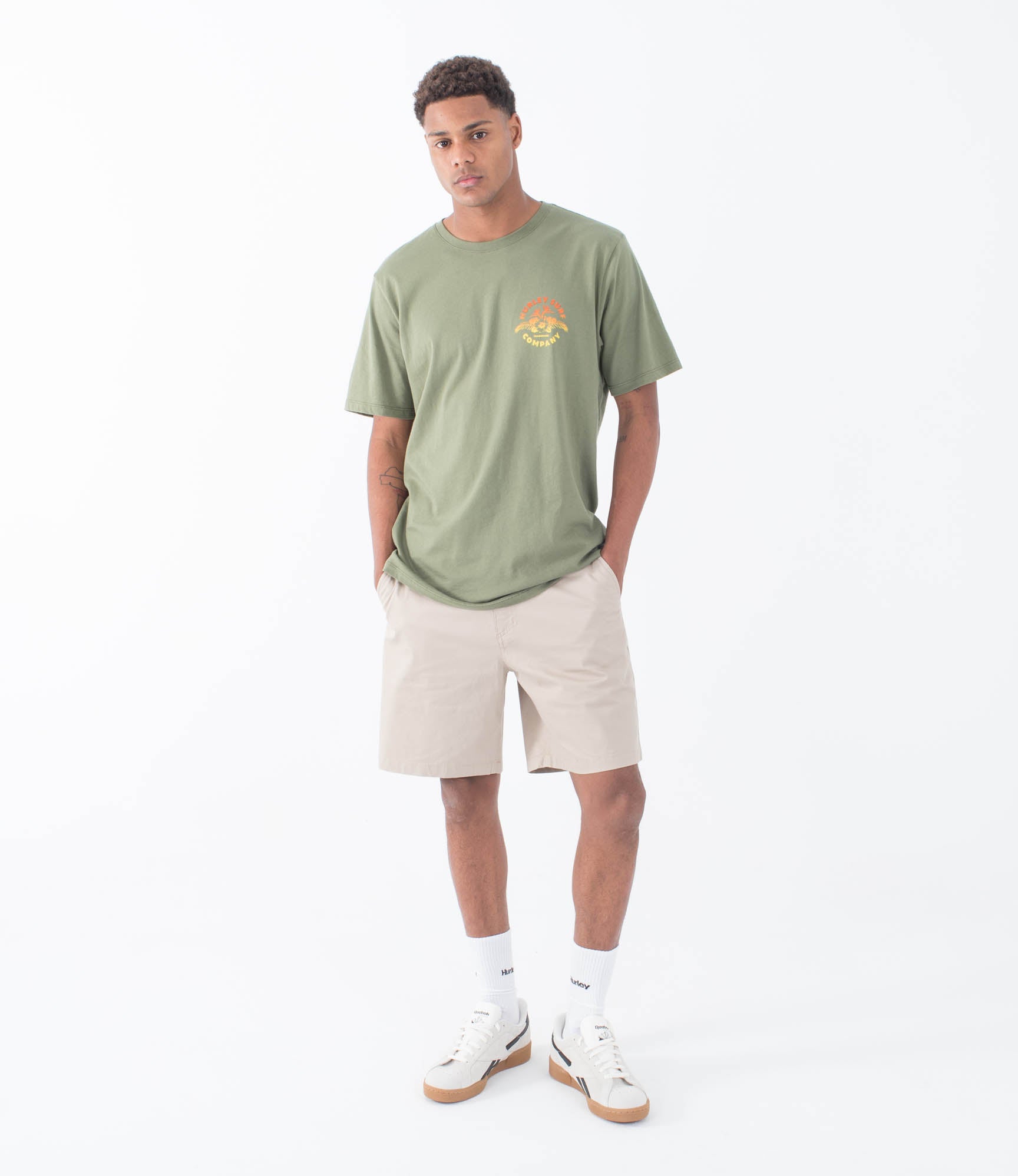מכנסיים קצרים לגברים מבית המותג הארלי. בגזרה עד הברך, עם שני כיסים קדמיים וכפתור סגירה.