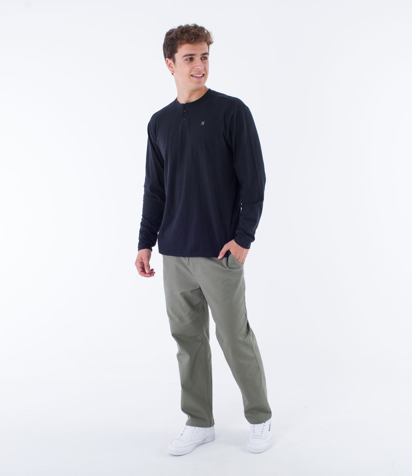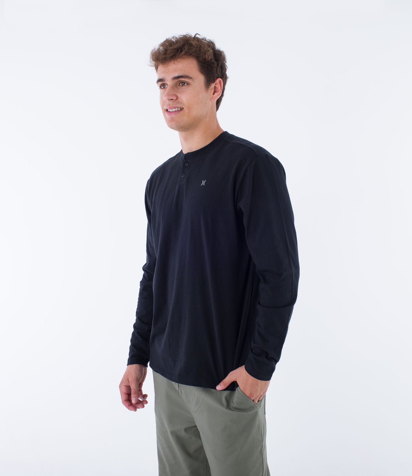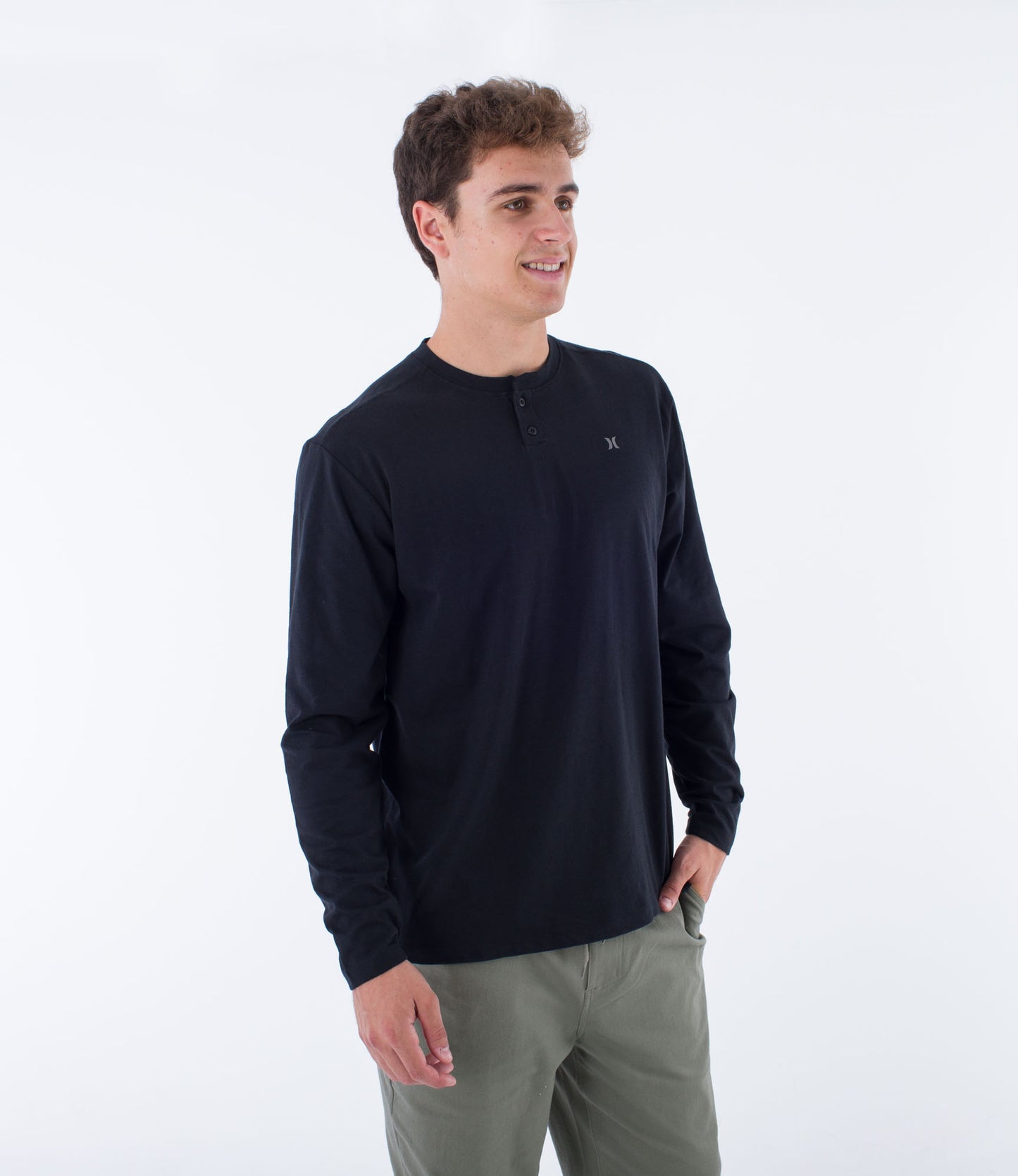 טי שירט ארוכה לגברים מבית המותג הארלי. גזרת סלים פיט, עם מפתח עגול, שני כפתורים בחזה, שרוולים ארוכים ולוגו המותג רקום בצד החזה.