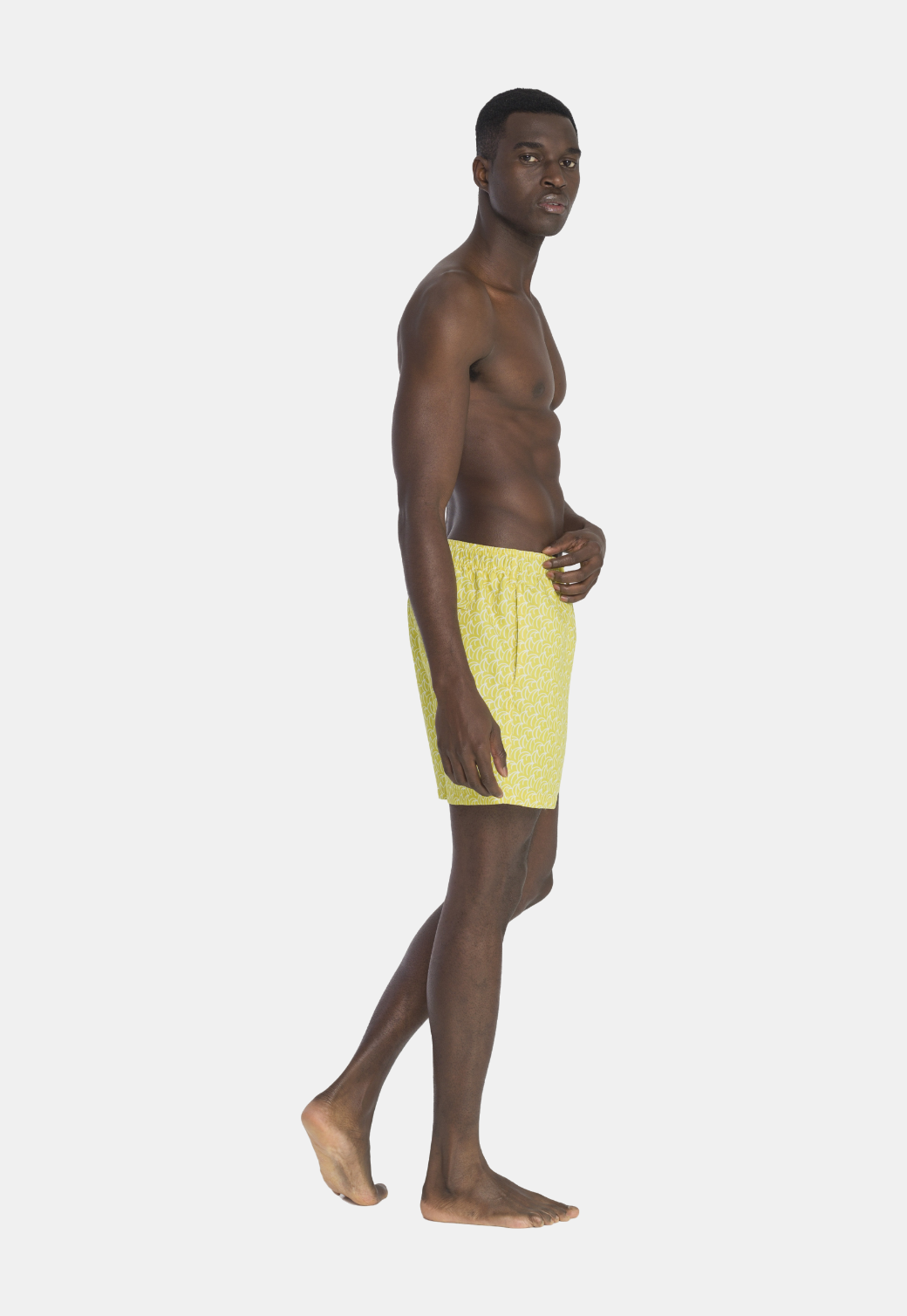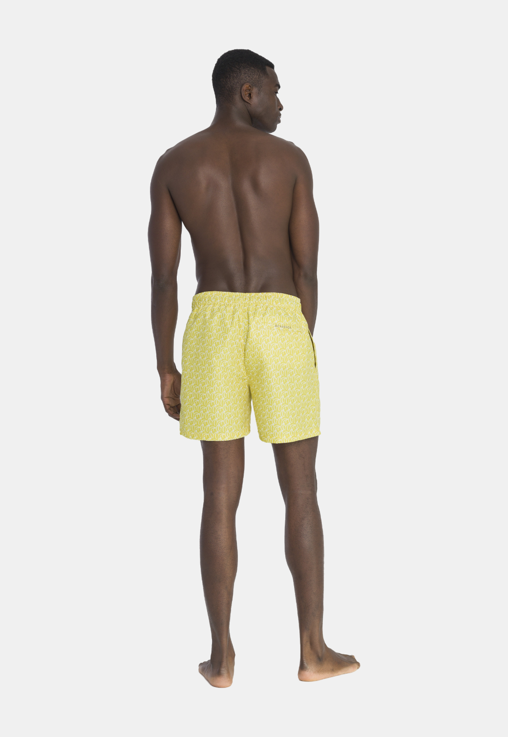 מכנסי בגד ים לגברים מבית המותג בניבקה. בגזרה קלאסית באורך מידי, עם גומי וקשירה במותן. בשילוב שני כיסים.