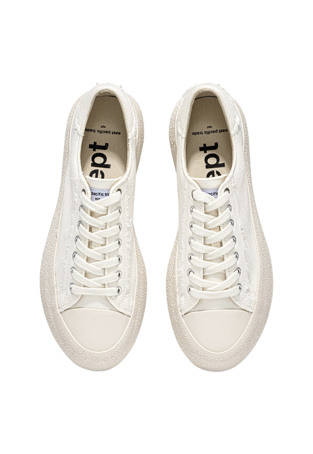 סניקרס לנשים מבית המותג EAST PACIFIC TRADE. מעוצבות בסגנון מודרני ונקי, עם סוליה גבוה ולוגו רקום של המותג בצד. בסגנון ג'ינס עם פרנזים בתפרים.