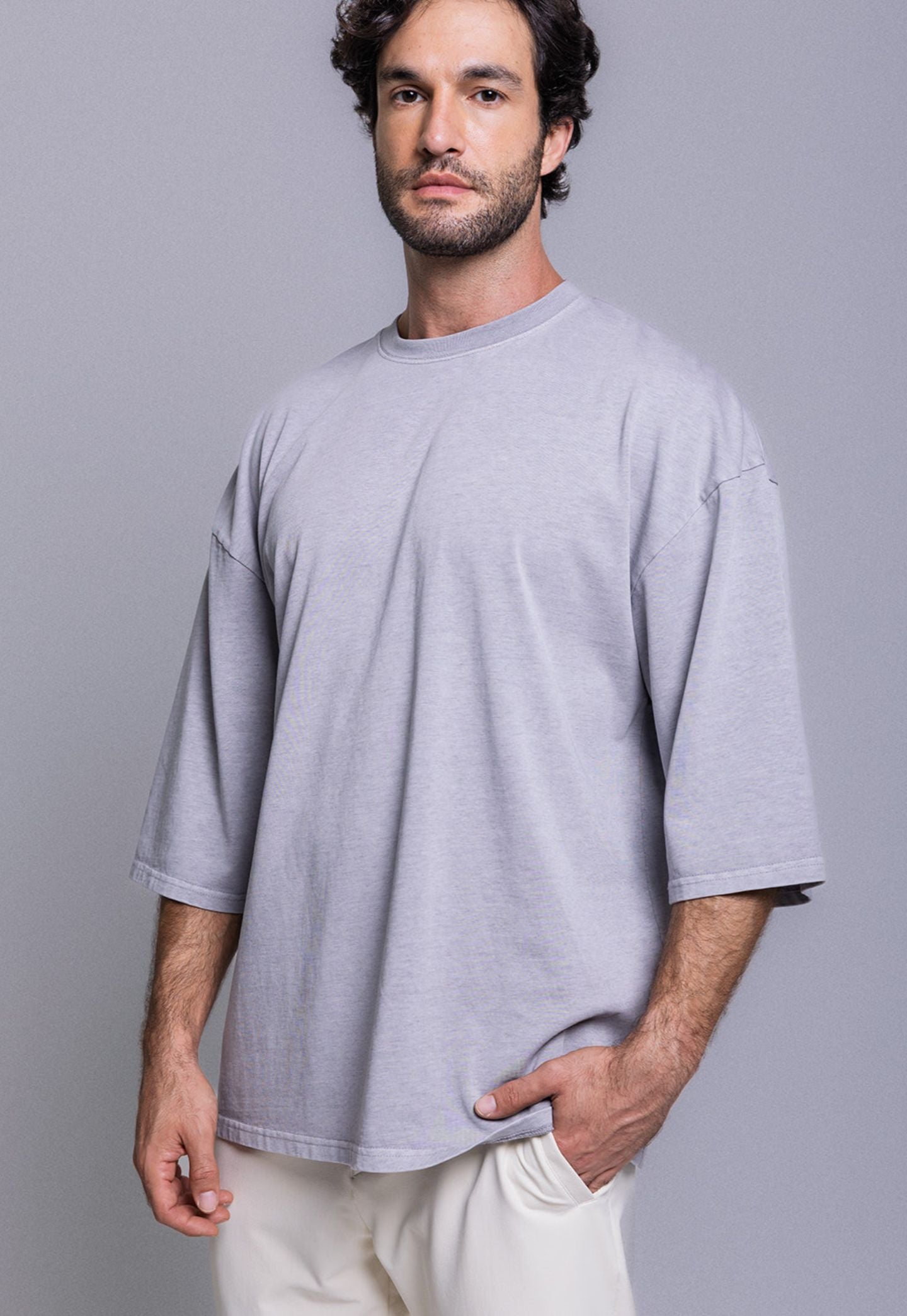 טי שירט לגברים מבית Thirty Degrees, בגזרת אוברסייז רחבה עם שרוולים מוארכים ליצירת סילואטה מודרנית ונינוחה עם נוכחות אורבנית.