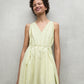 בגזרה משוחררת, עם מפתח וי, עם חגורת קשירה דקה להידוק המותן, ניתן לקשור מקדימה ומאחורה.