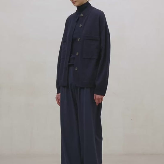גזרה רפויה וכתפיים שמוטות כולל סגירת כפתורים קדמית כיס חזה צווארון וגימורים בסריג ריב שילוב.