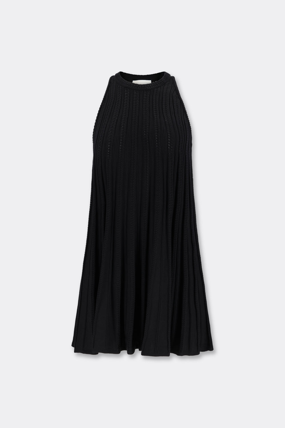 עשויה מבד פליסה קליל ונעים בתנועה, בגזרה רפויה עם מפתח צוואר עגול וקפלים עדינים לכל האורך שיוצרים מראה זורם ומעודן. השמלה כוללת גב פתוח עם סגירת כפתור עדינה בעורף.