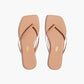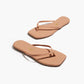 כפכפי נשים שטוחים עם רצועות דקות וסוליה שטוחה עם חרטום מרובע. עשויים עור.
