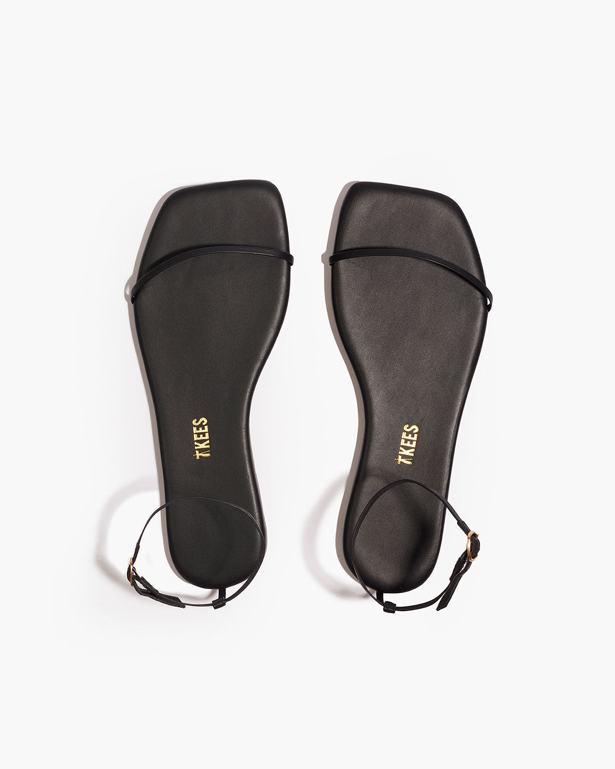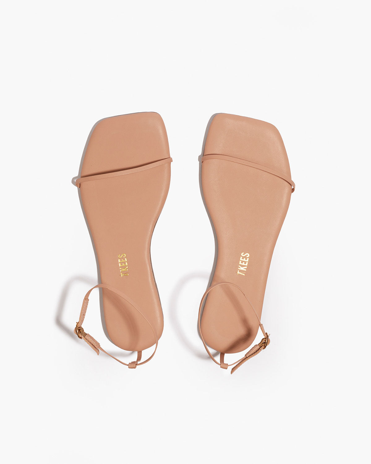 סנדלי עור מבית המותג TKEES, בעיצוב מינימליסטי עם רצועות דקות ועדינות וסילואטת אצבע מרובעת מודרנית. מיקום הרצועות הפשוט והמדויק יוצר מראה אלגנטי ונקי המתאים לכל לוק קייצי.