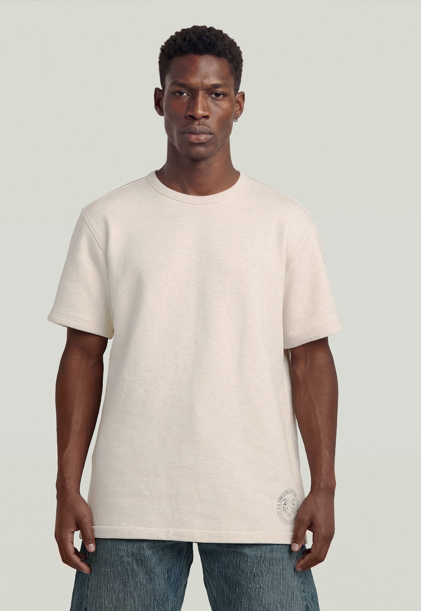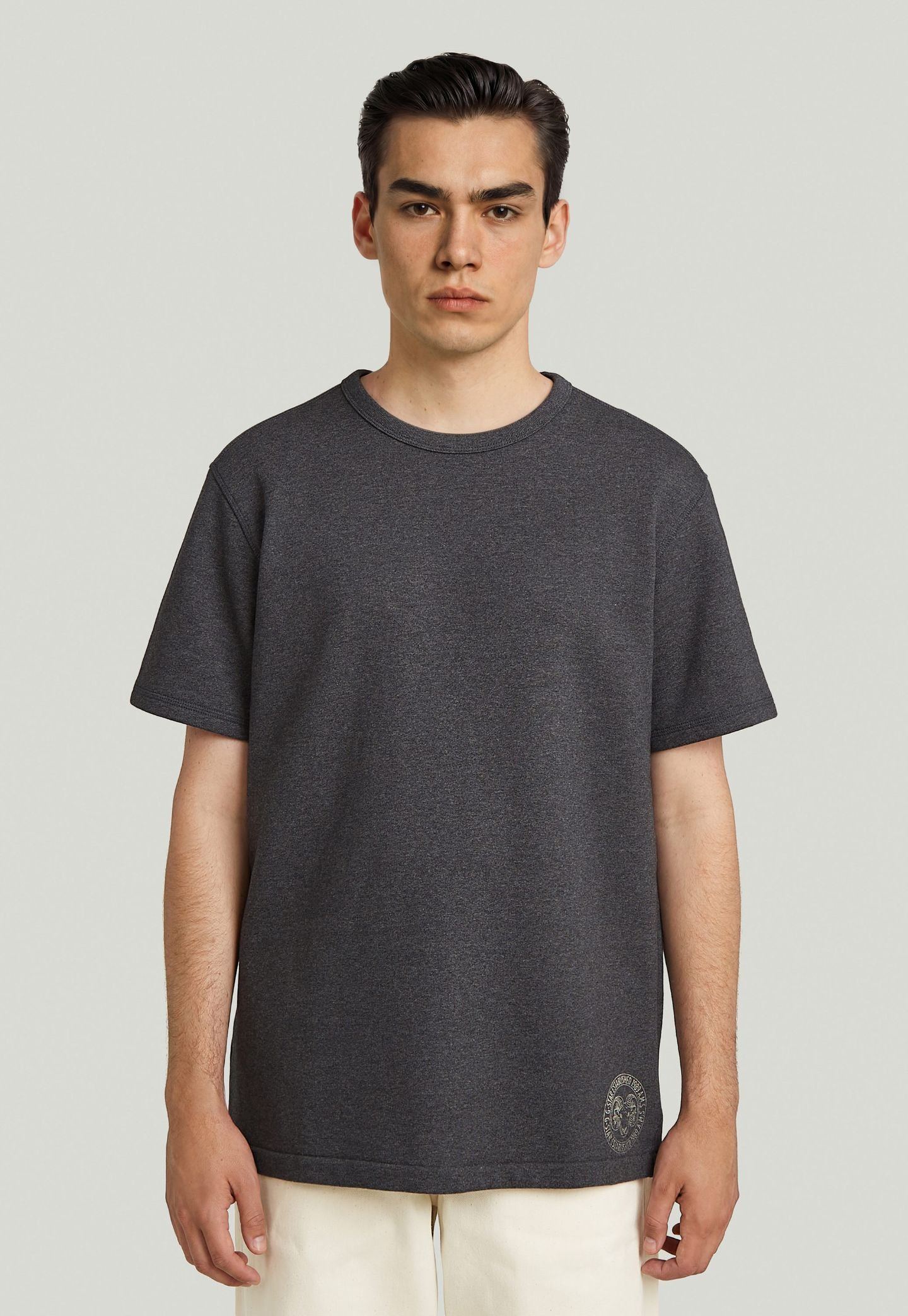טי-שירט לגברים מבית המותג G-STAR, בהשראת גופיות צבאיות מתחילת המאה ה־20 שהפכו עם השנים לפריט בסיס יומיומי.