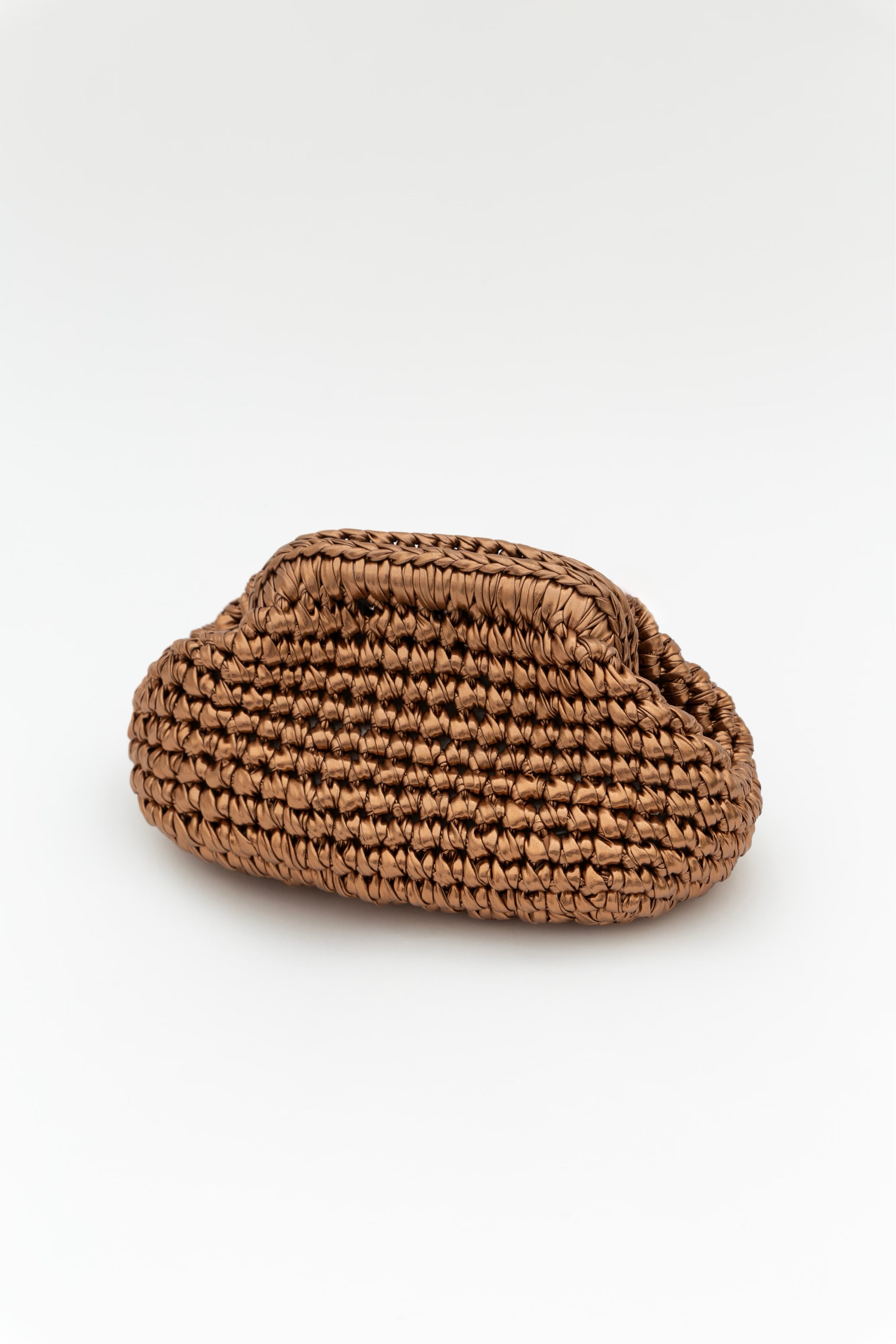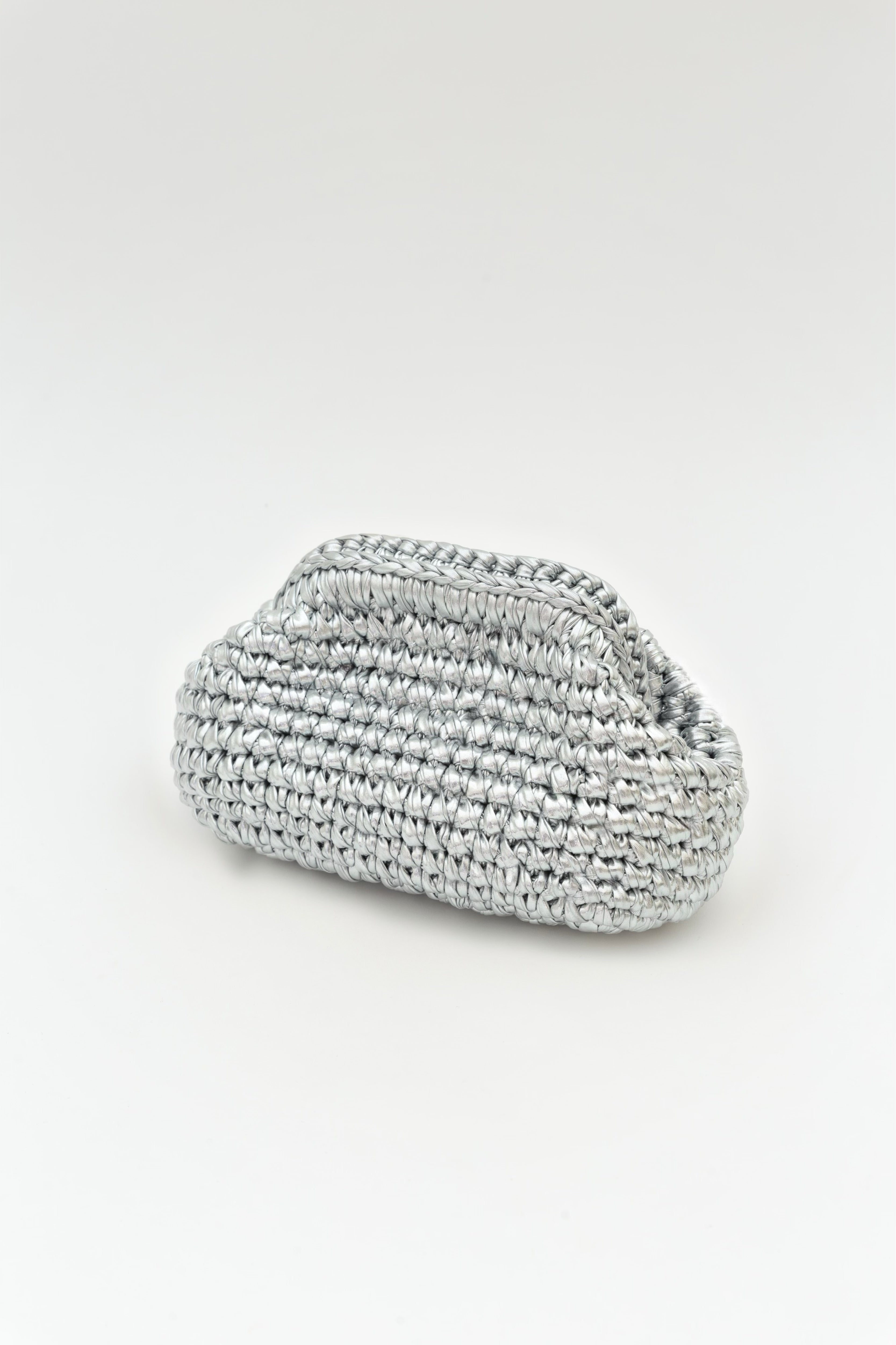 בעבודת יד סרוגה מחוט לייקרה ייחודי עם גימור מטאלי.