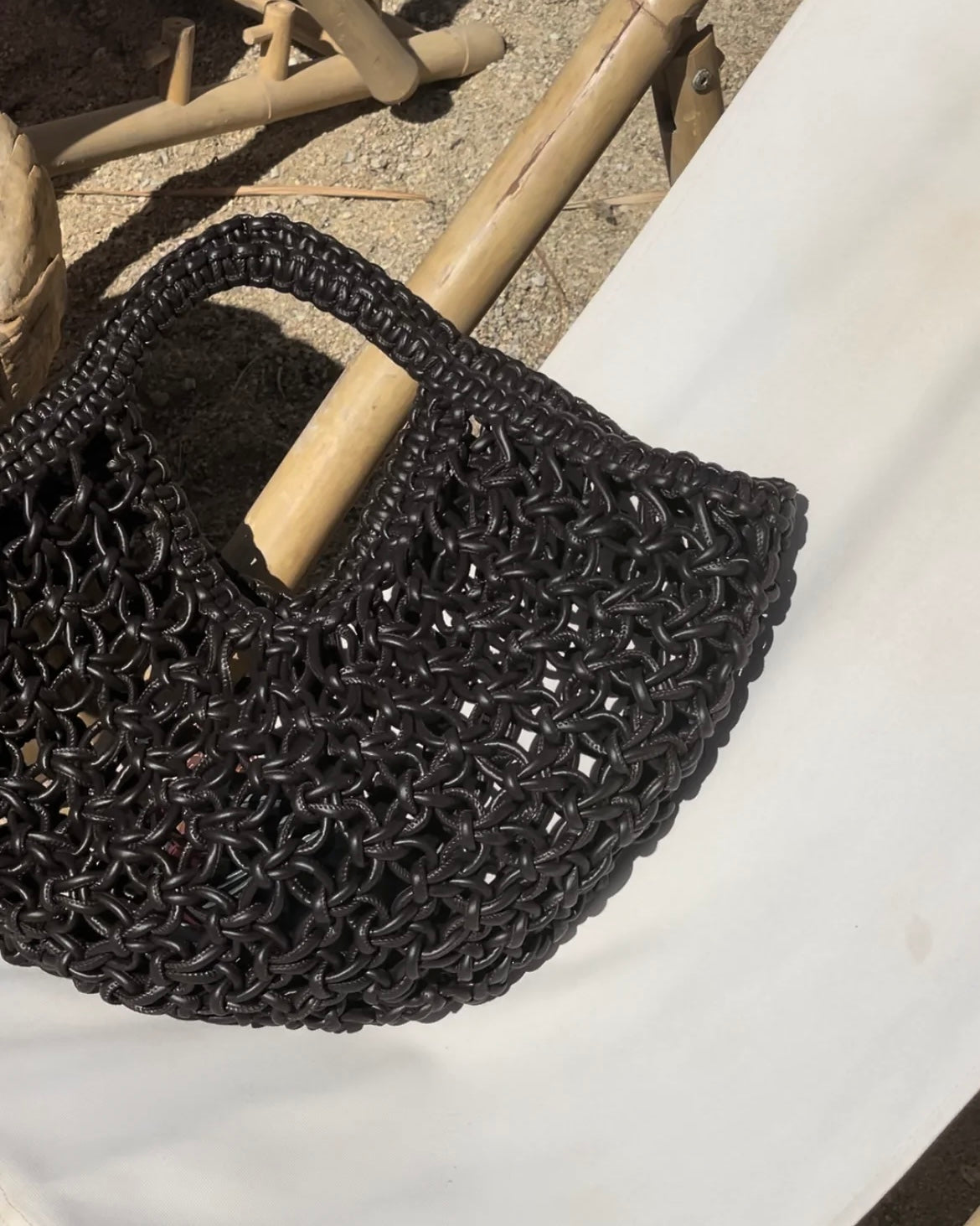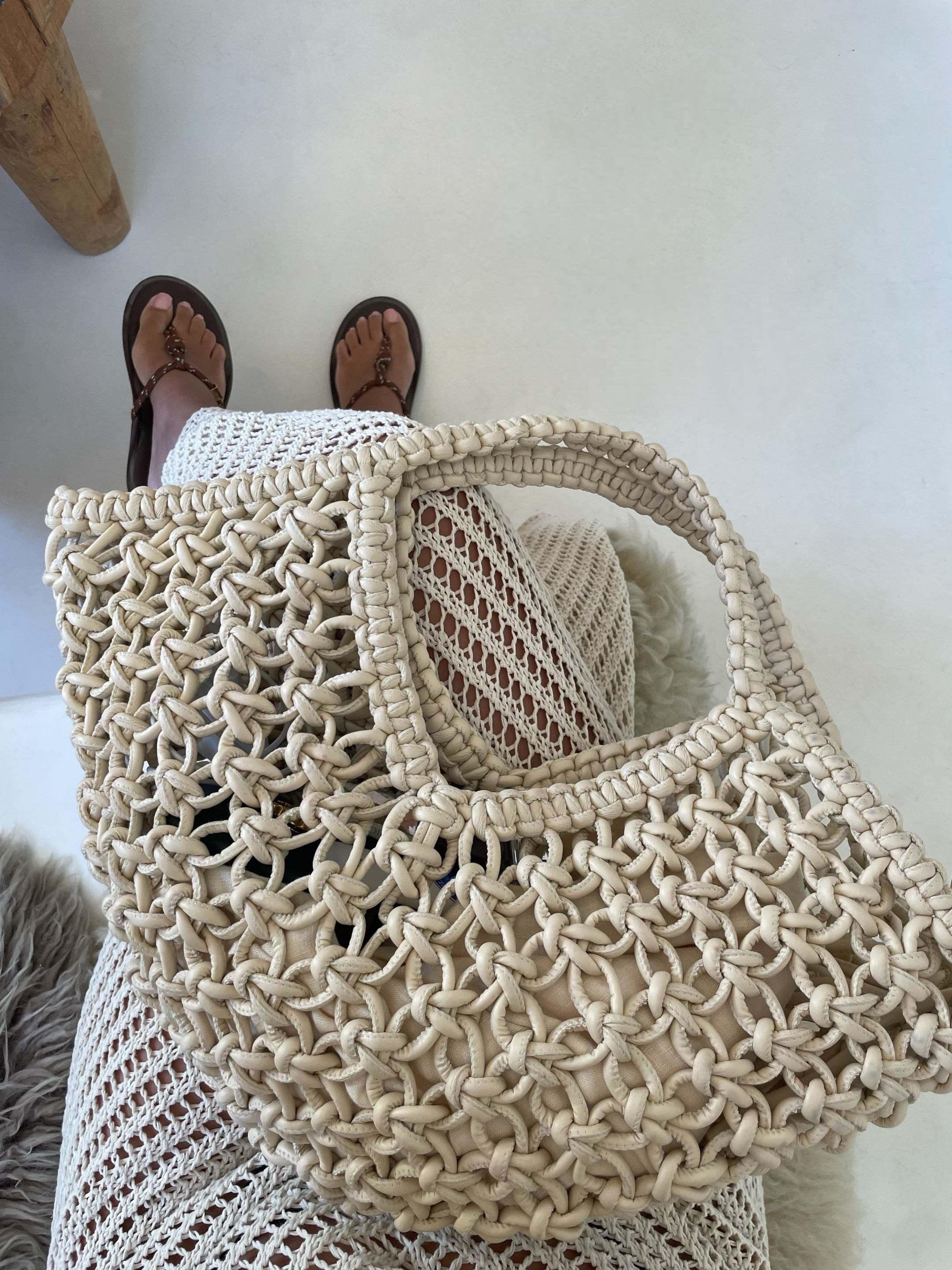 תיק צד לנשים קרושה גדול, סרוג בעבודת יד מחוטי עור.