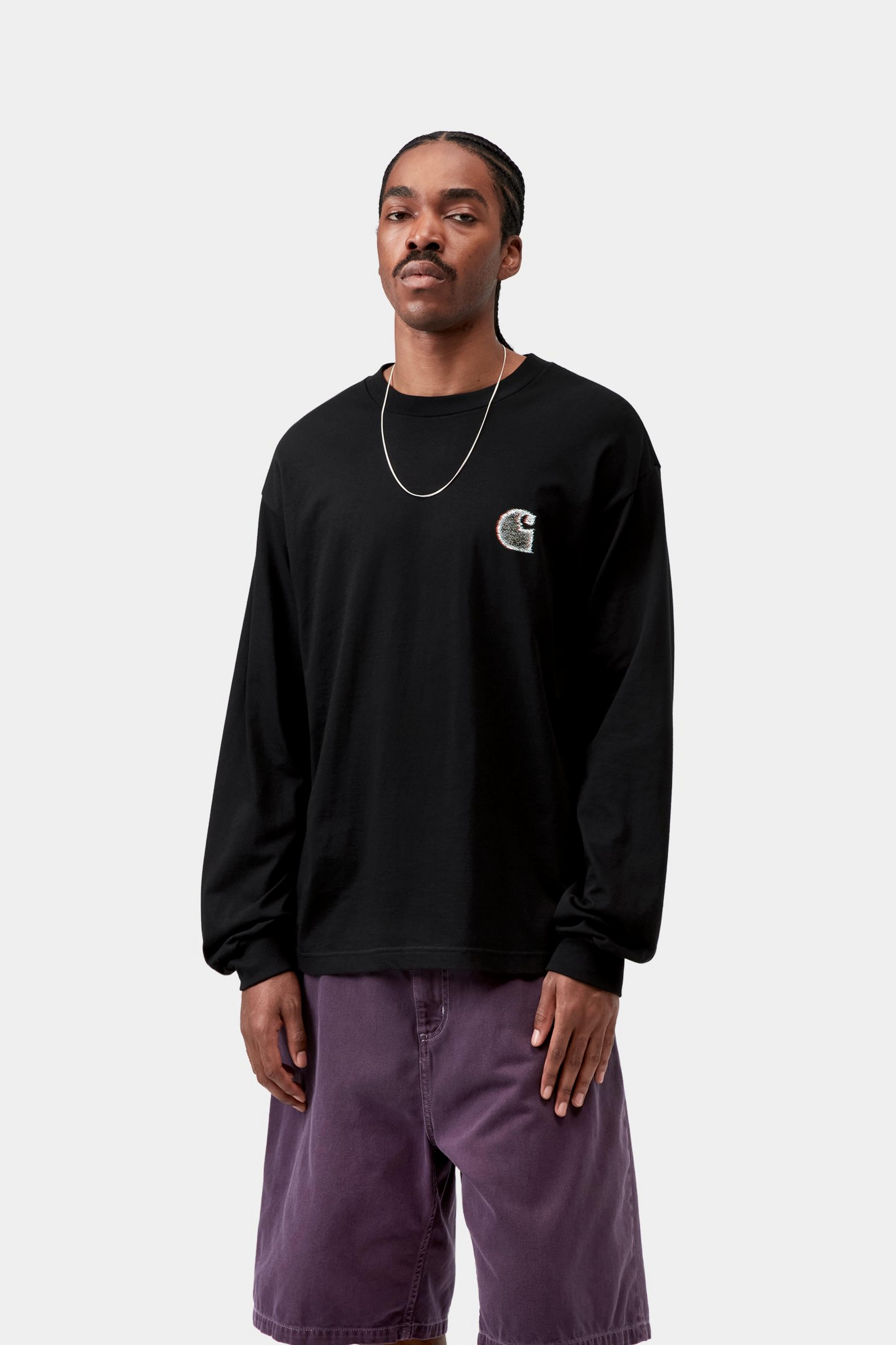 טי שירט ארוכה לגברים מבית המותג קרהארט , עשויה ג'רזי כותנה אורגנית במשקל בינוני המעניקה תחושה רכה ונוחה לאורך היום. הדגם בגזרה רפויה ליצירת מראה נינוח ועדכני, ומשלב הדפסים גרפיים בחלק הקדמי והאחורי המוסיפים אמירה בולטת ואופי ייחודי.