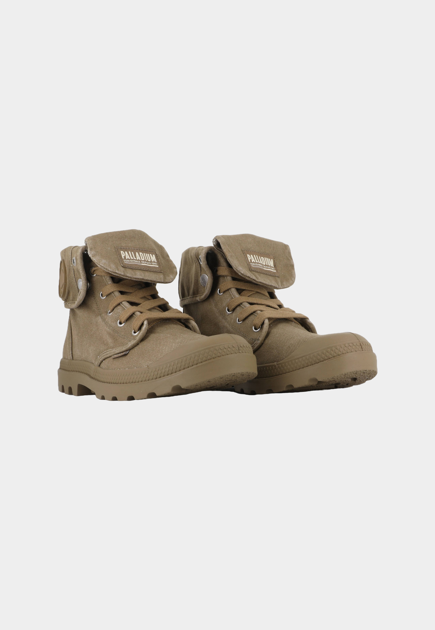 מגפי Baggy מבית המותג פלדיום, במראה הקלאסי והמוכר של המותג. חלקה העליון של הנעל מתקפל ומציג לוגו מוטבע של המותג בלשון הנעל ובצדדים החיצוניים שלה. סוליית גומי המכסה גם את קצות האצבעות לאחיזה נוחה של הרגל.