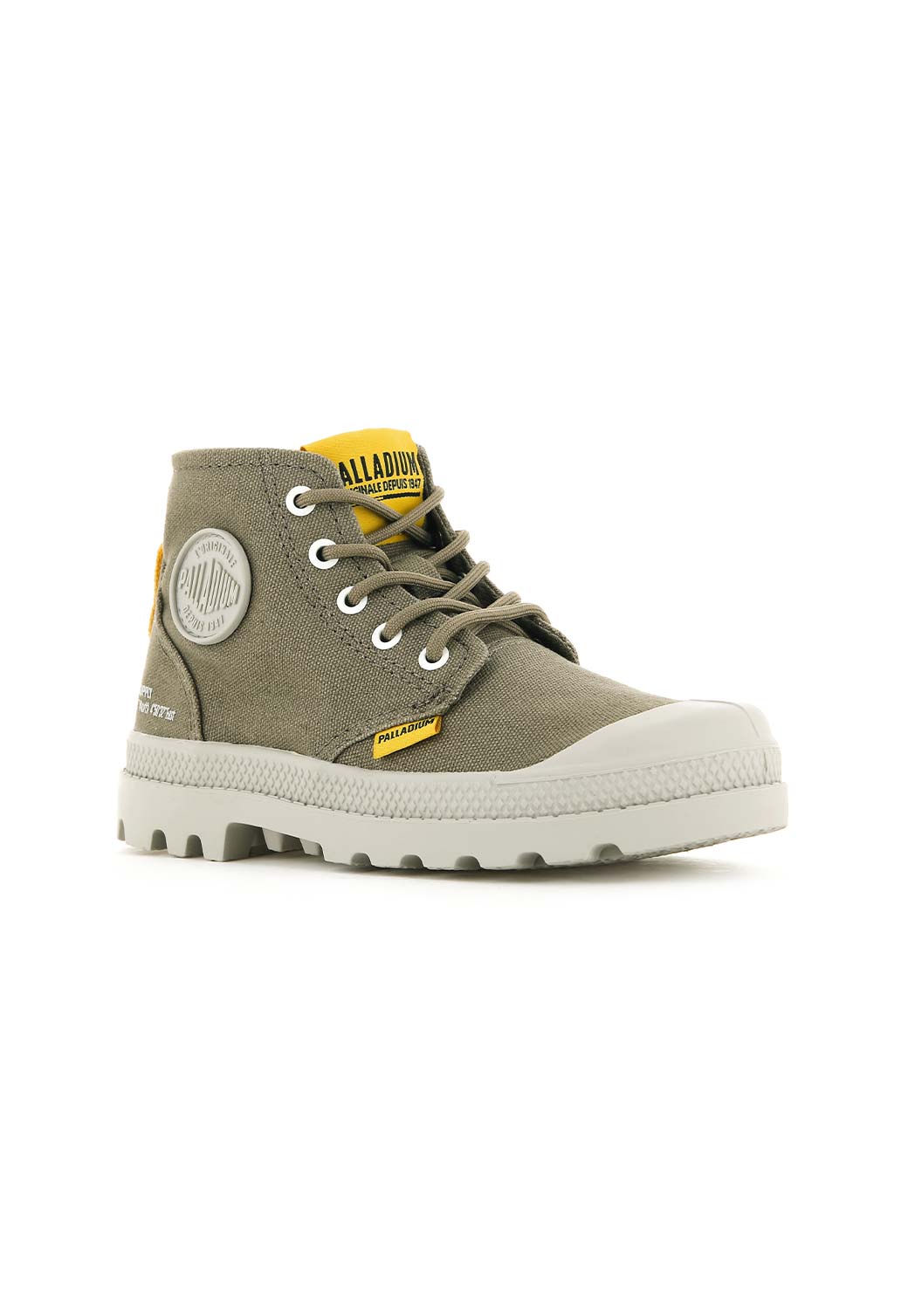 פעילי תנועות נוער חלוציות? קיבוצניקים על טרקטורים? מתבגרי ניינטיז? אלה רק חלק מהאסוציאציות המתלוות למילה פלדיום. אבל הסיפור של המותג PALLADIUM מתחיל הרבה קודם ובמקום אחר לגמרי. החברה נוסדה ב-1920 בצרפת כמפעל ייצור צמיגים למטוסים. אחרי מלחמת העולם השנייה הדרישה לצמיגים פחתה משמעותית ובפלדיום החליטו להיוולד מחדש כחברת נעליים שעושה שימוש בחומרים בהם היא מתמחה – קנבס וגומי. ב-1947 נולד דגם הפמפה המפורסם, שהנוחות והעמידות שלו עמדו בתנאי שטח קשים וגרמו לצבא צרפת לגייס אותו לשורותיו. אבל ההצלחה של נעלי PALLADIUM לא נשארה בגבולות צרפת והפופולאריות של הנעליים חצתה יבשות ותרבויות. לאחר גלי הצלחה נוספים בשנות ה-70 ה-90 נעלמו הנעליים מפני השטח האופנתי. בשנים האחרונות זוכות הפלדיום לרנסנס עם שיאי פופולאריות חדשים, זאת לאחר שהמותג נרכש על ידי יזם הולנדי שהשיב לו את הצבע ללחיים (ולקנבס). למרות שהעיצוב כמעט ולא השתנה, הסגנון והאיכות ששירתו בעבר לוחמי קומנדו קיבלו רלוונטיות מחודשת בסביבה האורבנית, עם קולקציות לנשים, גברים וילדים, צבעוניות חדשה ומשמחת.