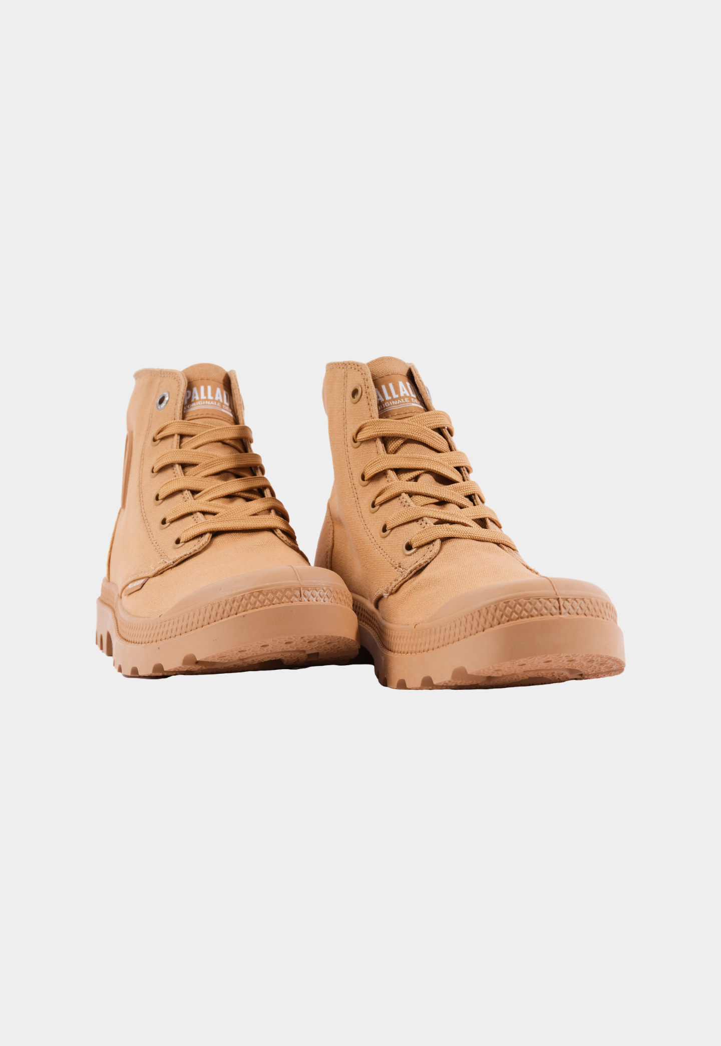 פעילי תנועות נוער חלוציות? קיבוצניקים על טרקטורים? מתבגרי ניינטיז? אלה רק חלק מהאסוציאציות המתלוות למילה פלדיום. אבל הסיפור של המותג PALLADIUM מתחיל הרבה קודם ובמקום אחר לגמרי. החברה נוסדה ב-1920 בצרפת כמפעל ייצור צמיגים למטוסים. אחרי מלחמת העולם השנייה הדרישה לצמיגים פחתה משמעותית ובפלדיום החליטו להיוולד מחדש כחברת נעליים שעושה שימוש בחומרים בהם היא מתמחה – קנבס וגומי. ב-1947 נולד דגם הפמפה המפורסם, שהנוחות והעמידות שלו עמדו בתנאי שטח קשים וגרמו לצבא צרפת לגייס אותו לשורותיו. אבל ההצלחה של נעלי PALLADIUM לא נשארה בגבולות צרפת והפופולאריות של הנעליים חצתה יבשות ותרבויות. לאחר גלי הצלחה נוספים בשנות ה-70 ה-90 נעלמו הנעליים מפני השטח האופנתי. בשנים האחרונות זוכות הפלדיום לרנסנס עם שיאי פופולאריות חדשים, זאת לאחר שהמותג נרכש על ידי יזם הולנדי שהשיב לו את הצבע ללחיים (ולקנבס). למרות שהעיצוב כמעט ולא השתנה, הסגנון והאיכות ששירתו בעבר לוחמי קומנדו קיבלו רלוונטיות מחודשת בסביבה האורבנית, עם קולקציות לנשים, גברים וילדים, צבעוניות חדשה ומשמחת.