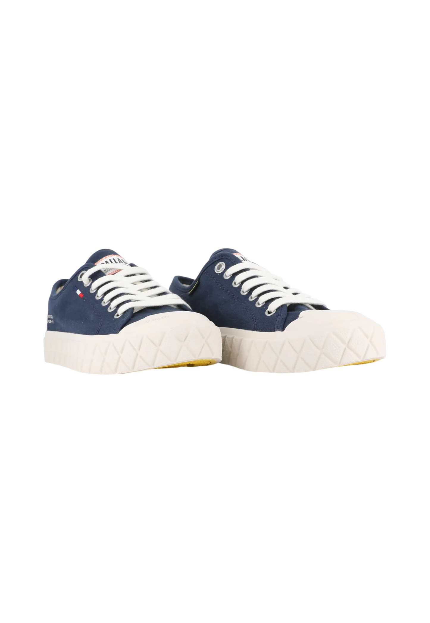 סניקרס יוניסקס מבית המותג פלדיום, בגזרה נמוכה. החלק העליון עשוי קנבס עם קשירת שרוכים. בשילוב סוליית גומי עבה, גבוהה וגמישה. בשילוב הטבעת לוגו המותג בצד הנעל.