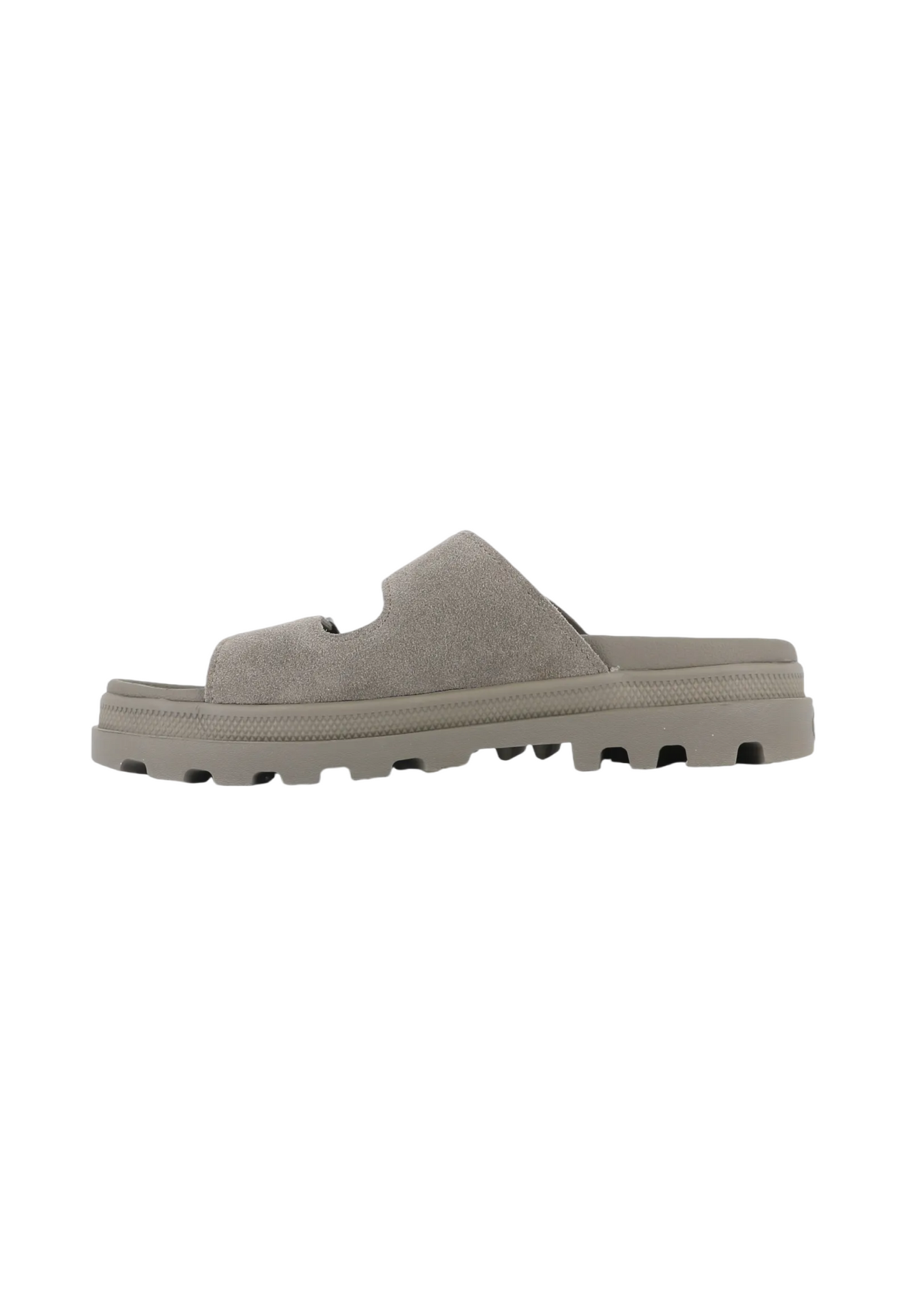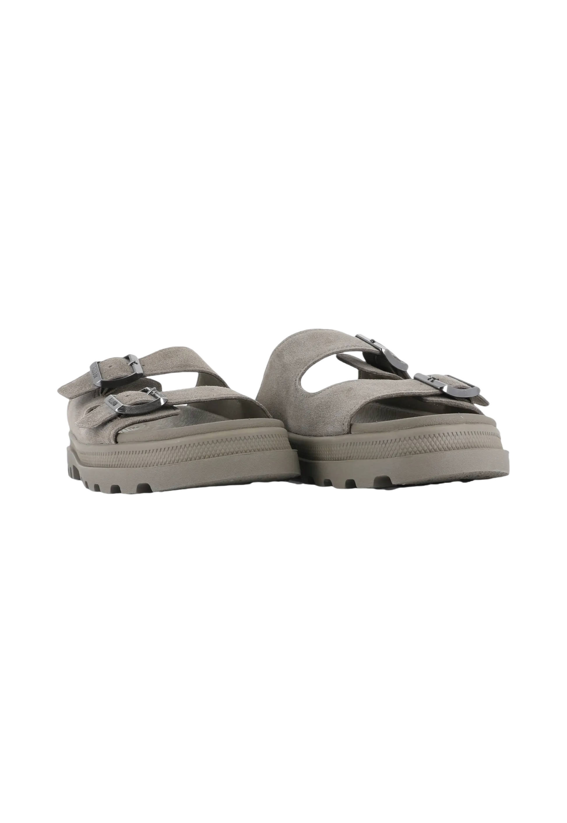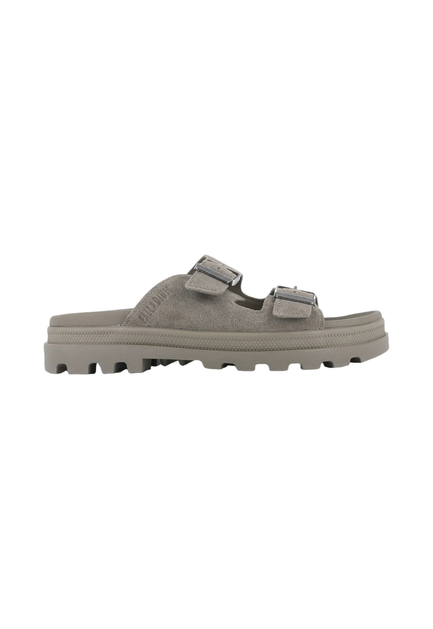 כפכפי סלייד לנשים מבית המותג פלדיום. כפכפים עם שתי רצועות קדמיות הנסגרות עם אבזם כסוף. עם סוליה מעט משוננת.