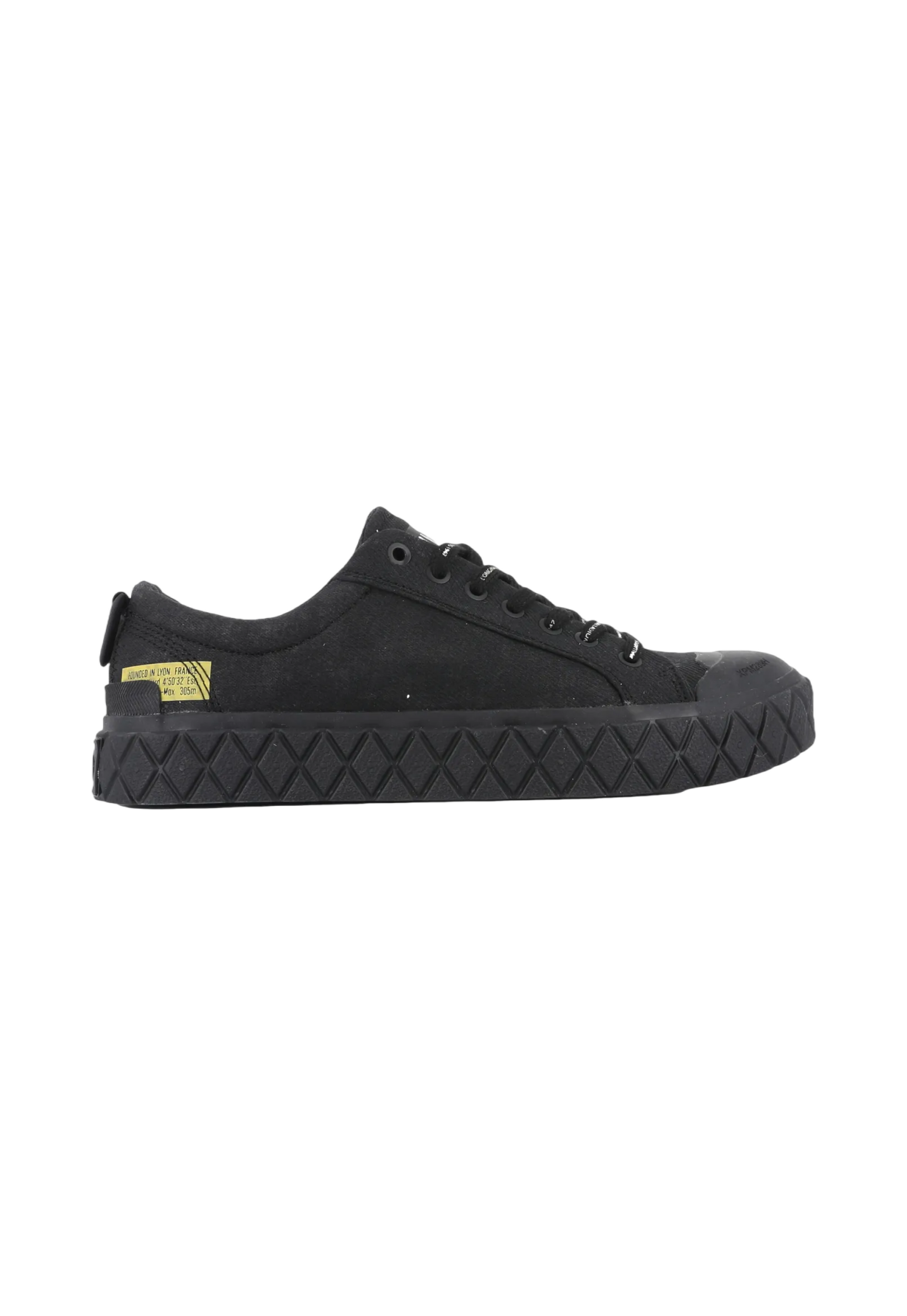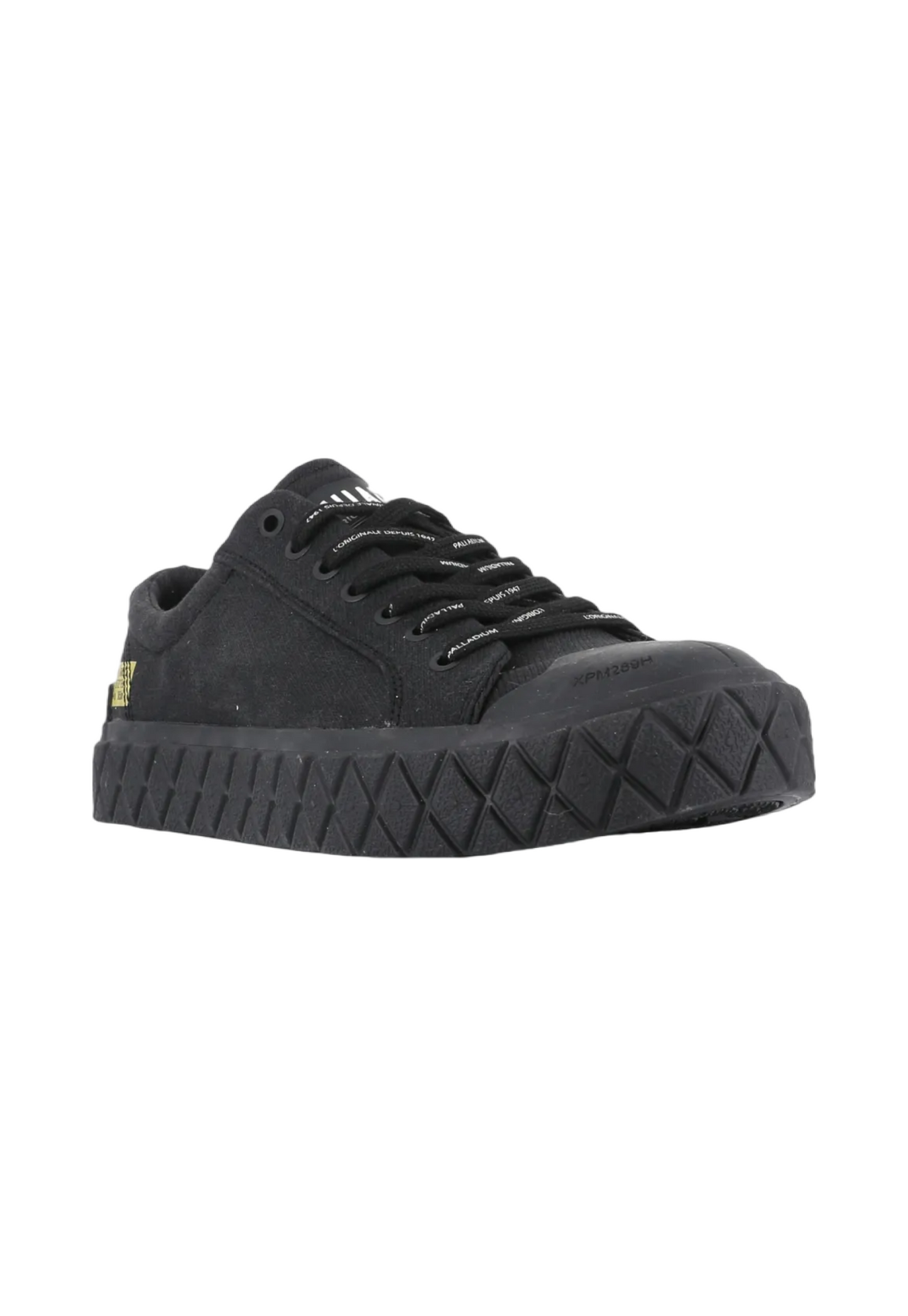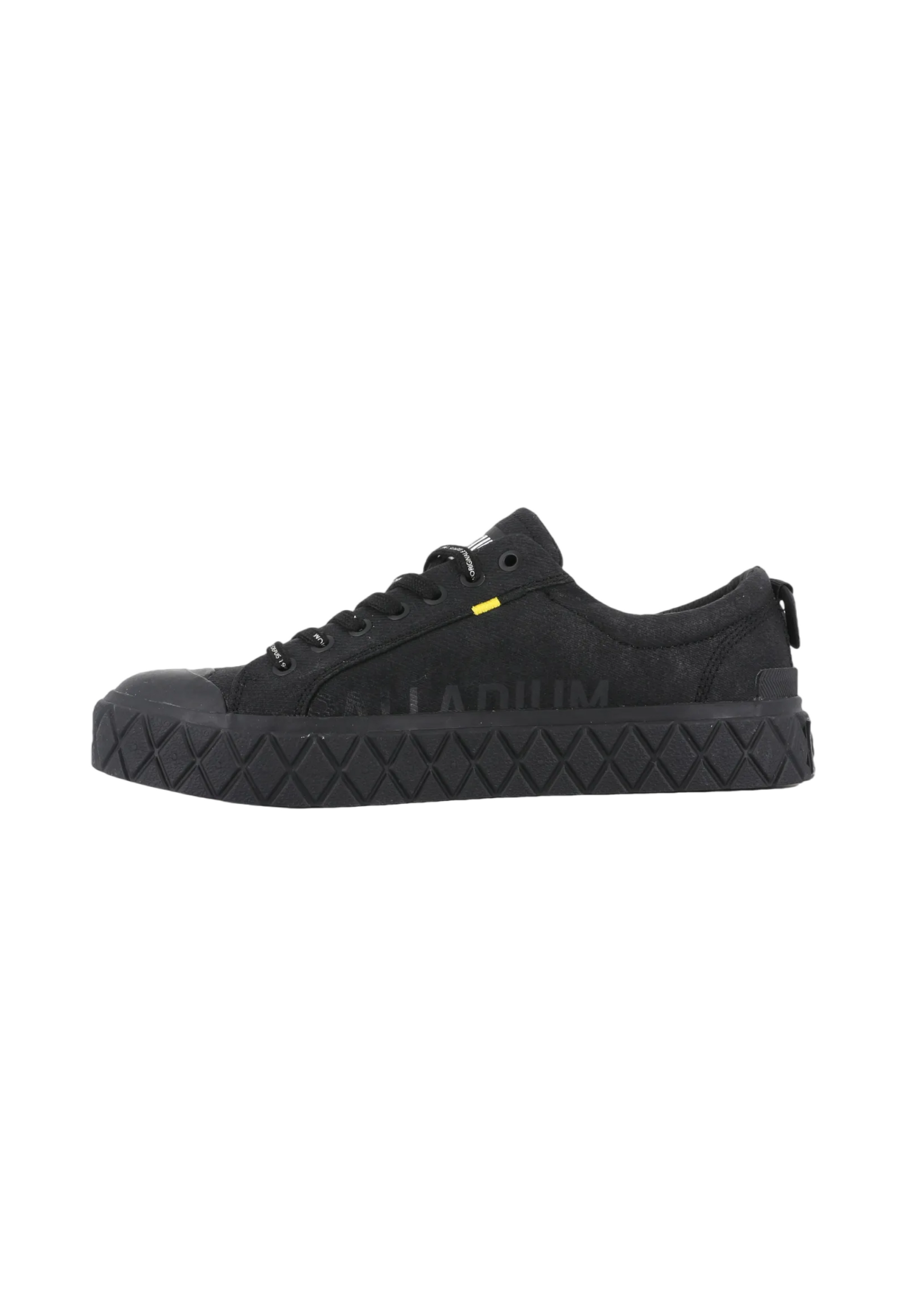 סניקרס יוניסקס מבית המותג פלדיום, בגזרה נמוכה. החלק העליון עשוי קנבס עם קשירת שרוכים. בשילוב סוליית גומי מעויינים עבה וגמישה. בשילוב הטבעת לוגו המותג בצד הנעל.