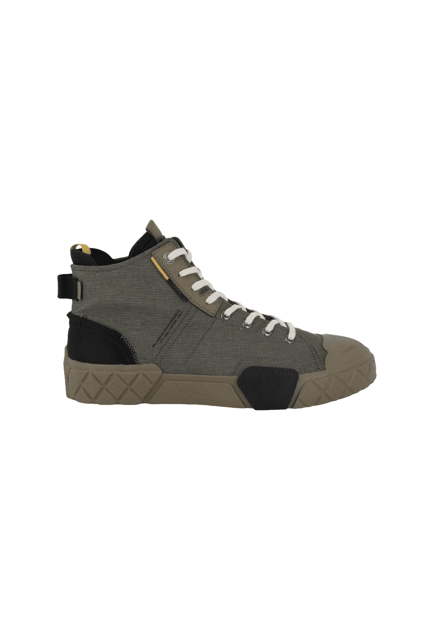 נעלי צ’וקה מדגם Palla Ace City Shell מבית המותג פלדיום, בעיצוב אורבני בהשראת עולם הטיולים והאסתטיקה הצבאית. הדגם משלב גפת מיקרו ריפסטופ עמידה עם סוליית גומי בטקסטורות משתנות למראה מודרני ופונקציונלי. הנעליים בגזרה בינונית עם שרוכים שטוחים, לולאת משיכה אחורית ואלמנטים ממותגים, ומציעות נוחות ועמידות לשימוש יומיומי בעיר.