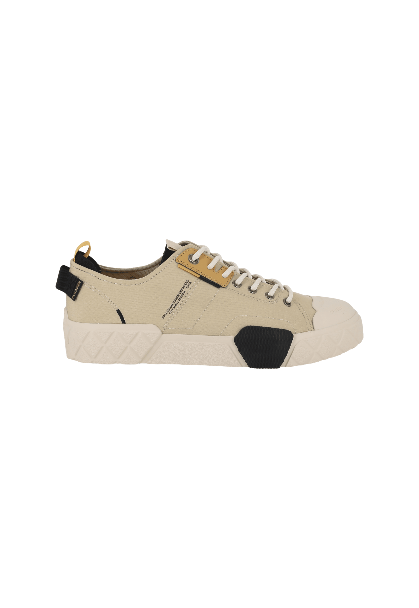 נעלי סניקרס מדגם Palla Ace City Shell Lo מבית המותג פלדיום, בעיצוב אורבני המשלב מראה מודרני עם השראה צבאית מחוספסת. הדגם משלב גפת מיקרו ריפסטופ עמידה לצד סוליית גומי בטקסטורות משתנות, המעניקות עמידות, אחיזה ונוחות לשימוש יומיומי.