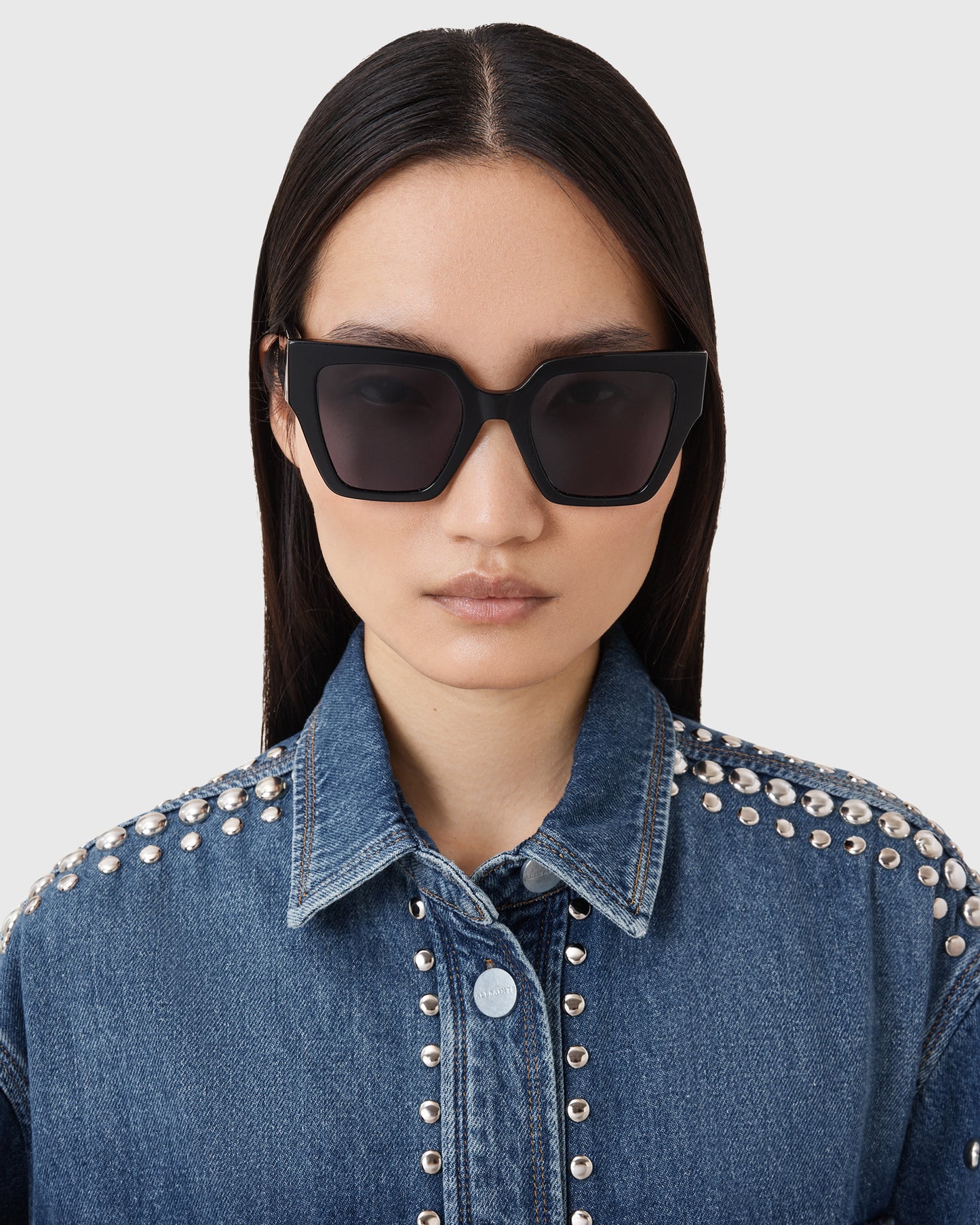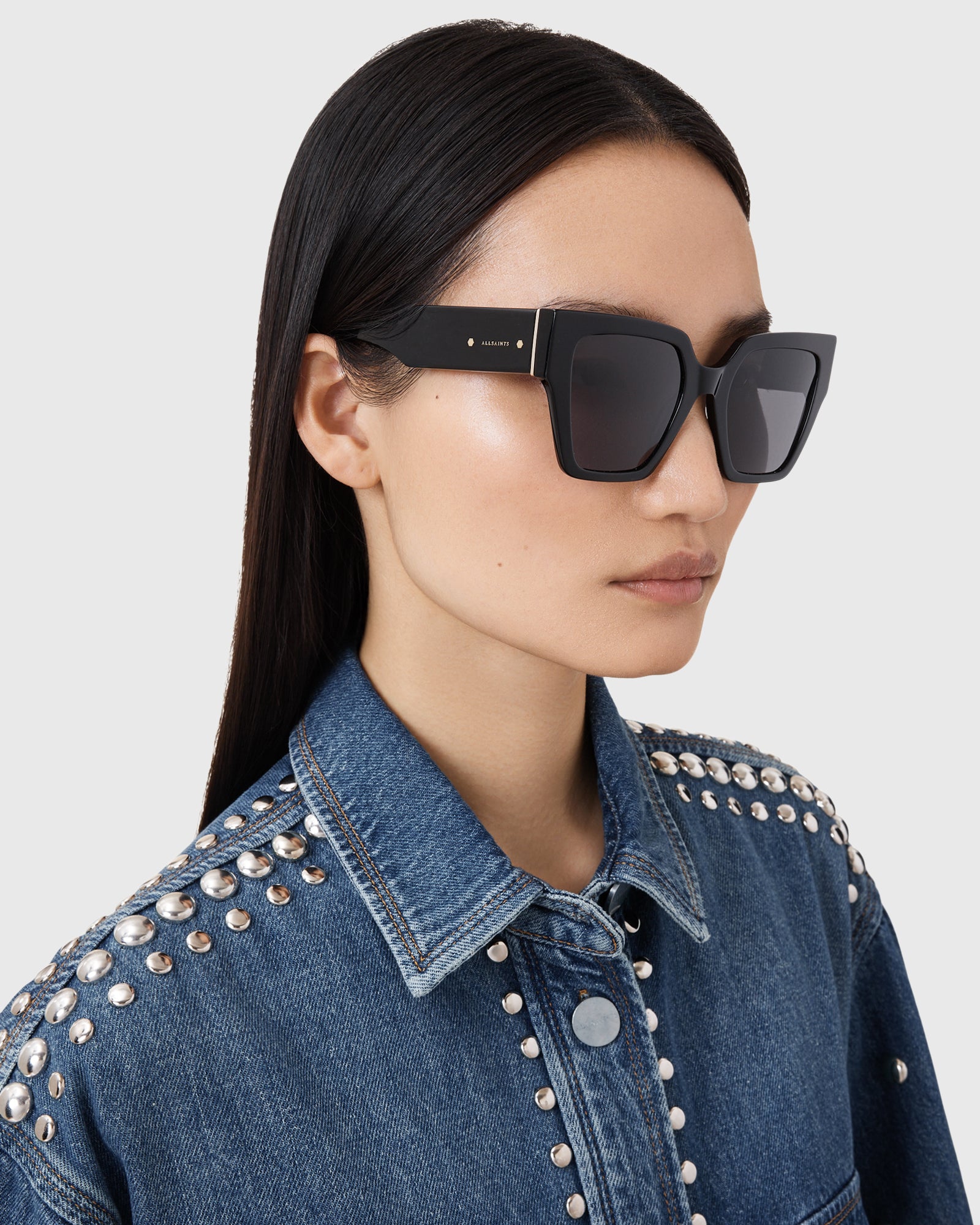 משקפי שמש מבית המותג אולסיינטס בעיצוב עין חתולית מרובעת עם גימור מבריק.