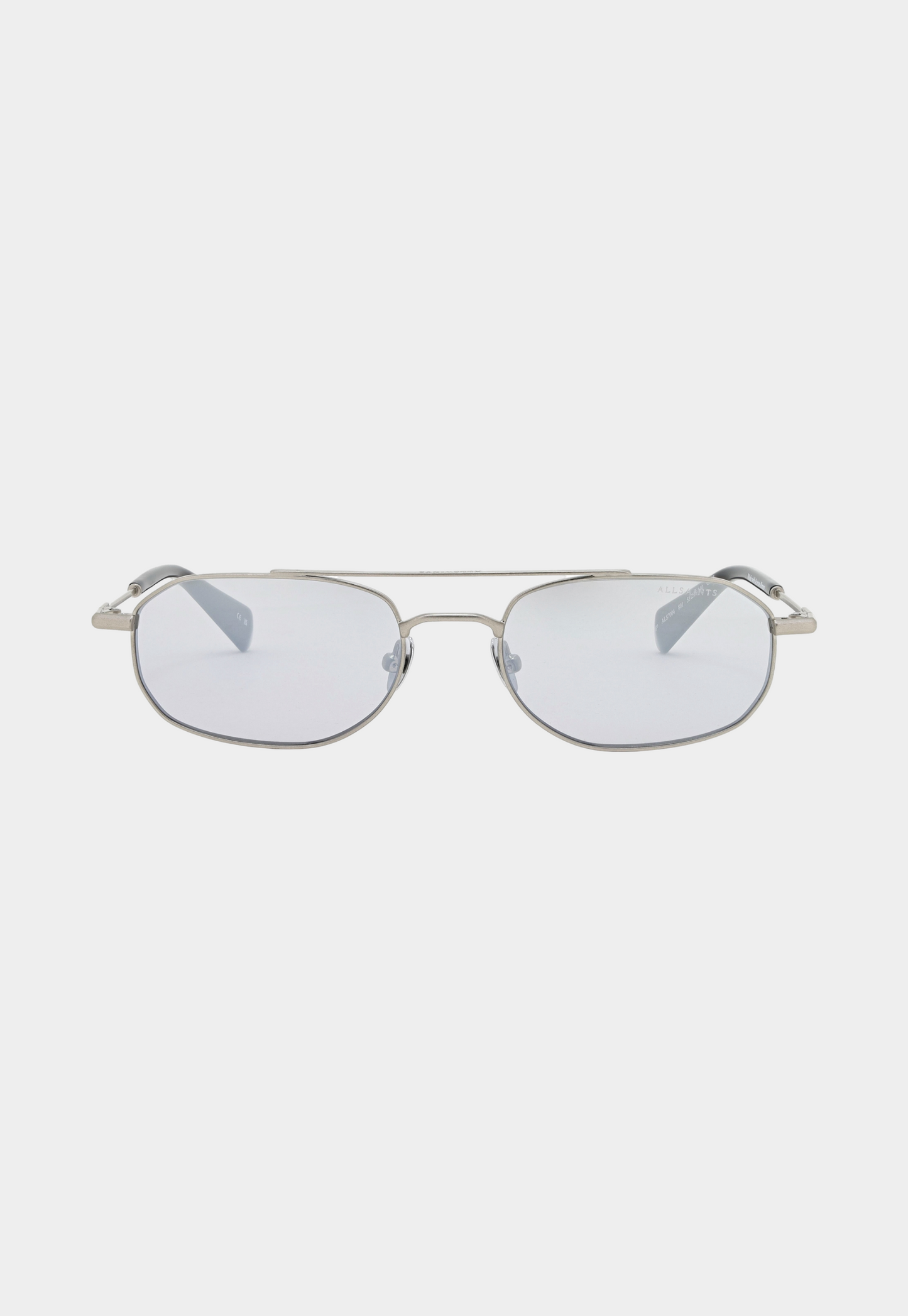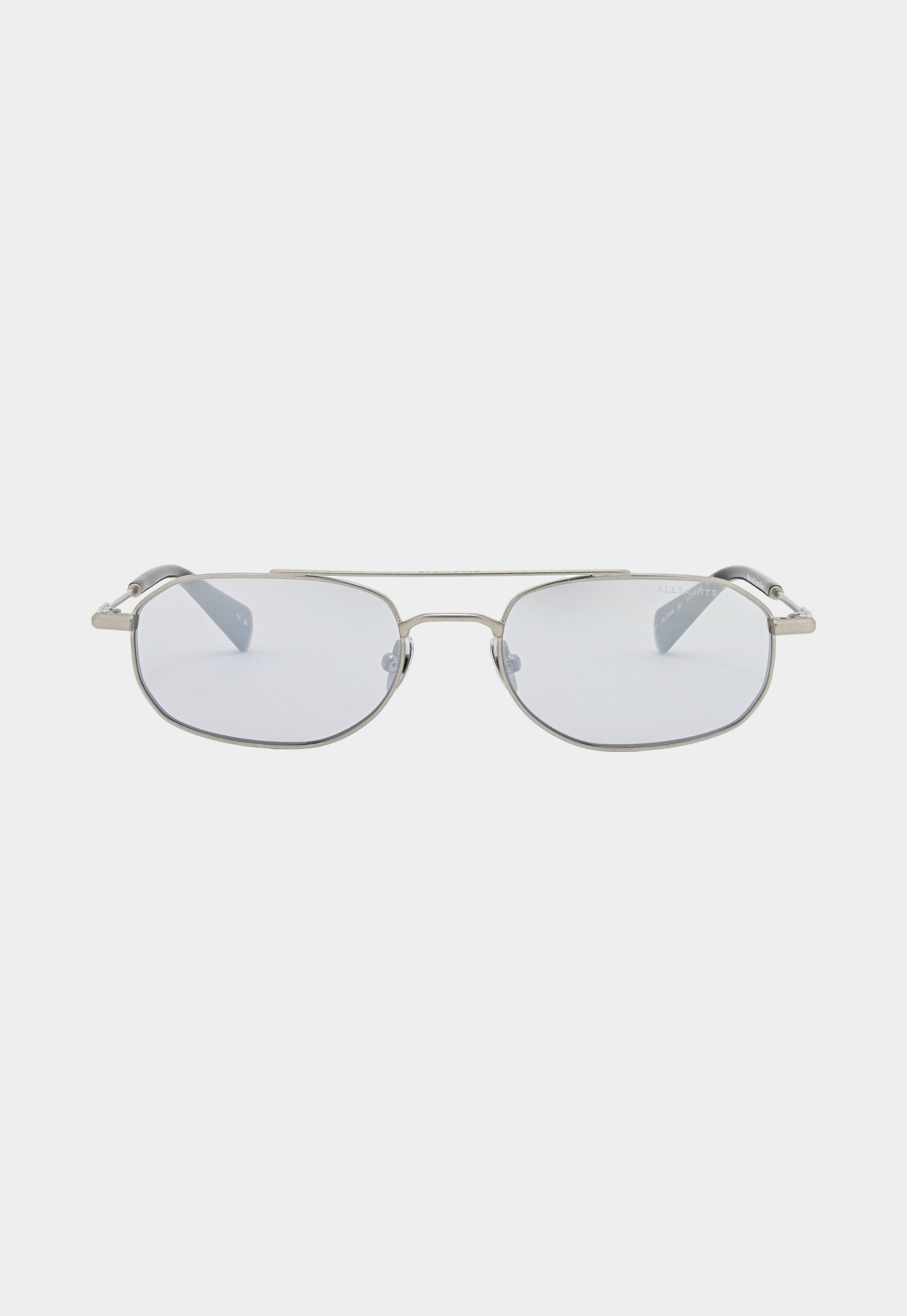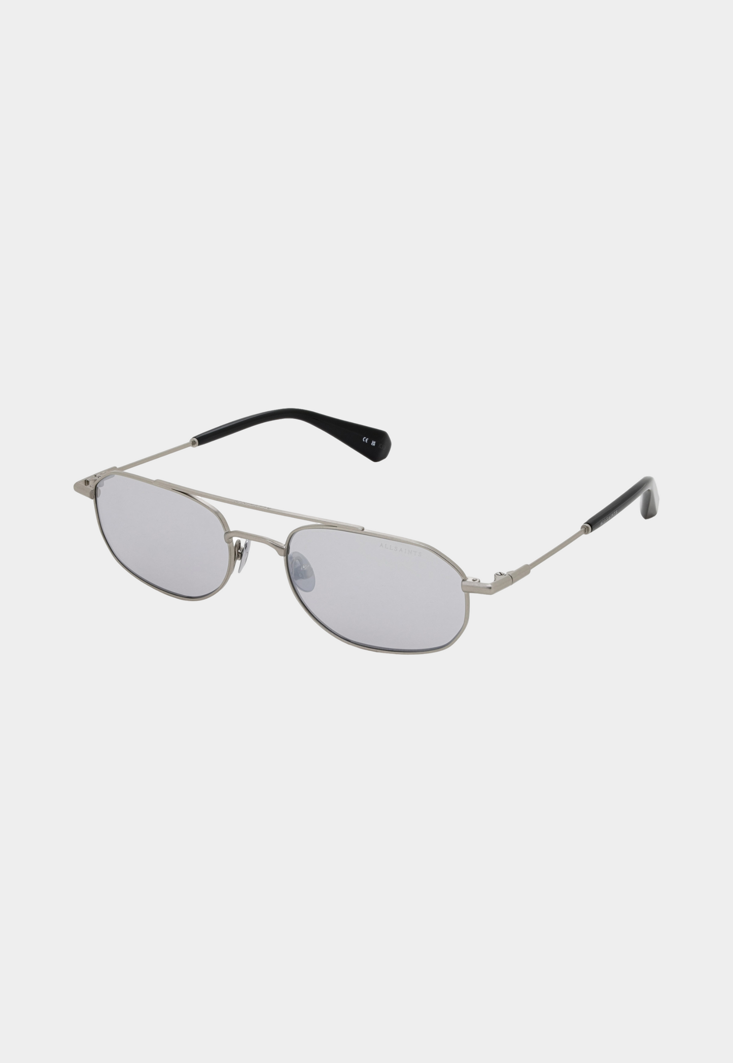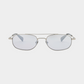 משקפי שמש לנשים מבית המותג אולסיינטס עם מסגרת מתכת דקה בגוון כסוף ועדשות בהירות בגוון אפור.