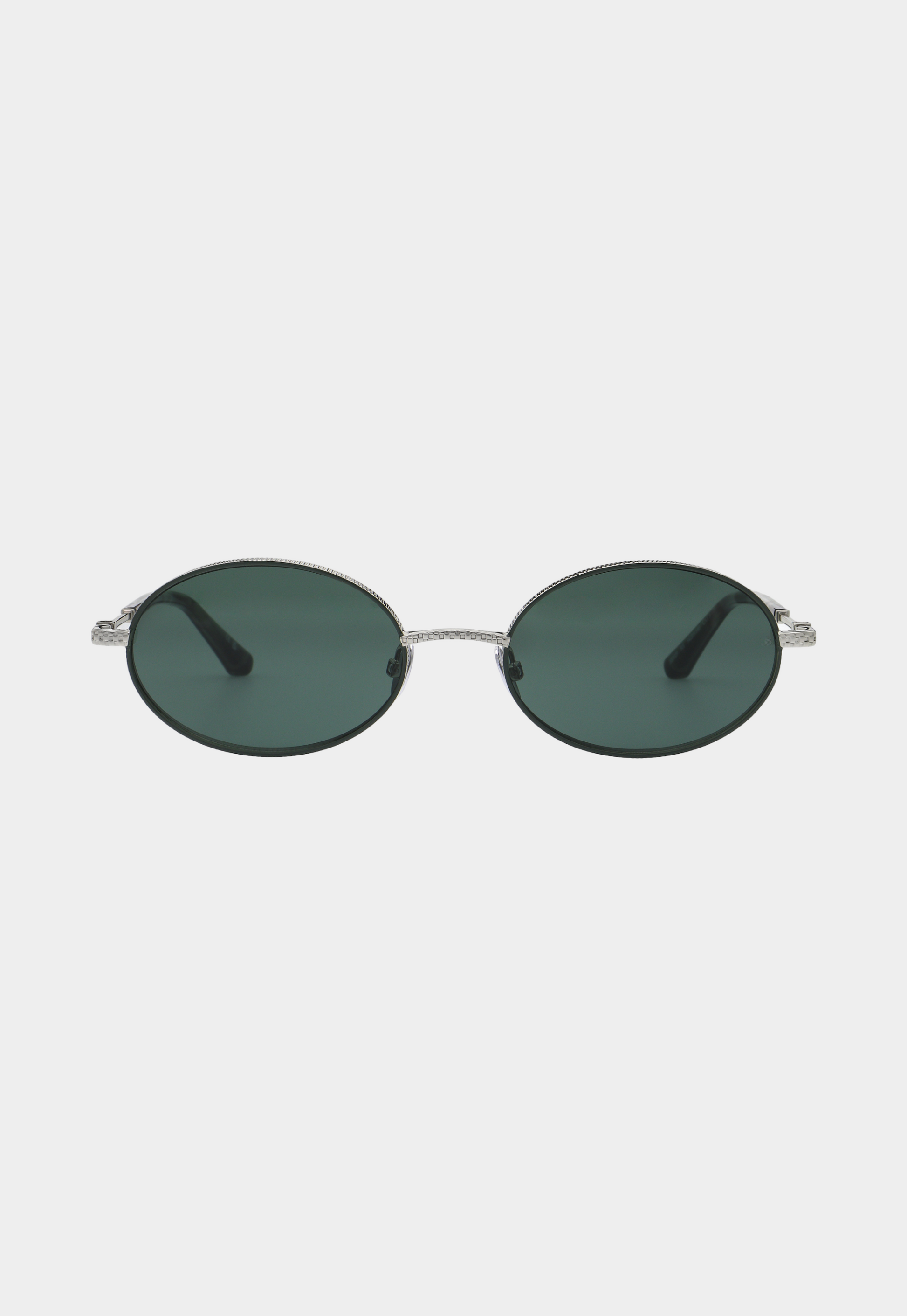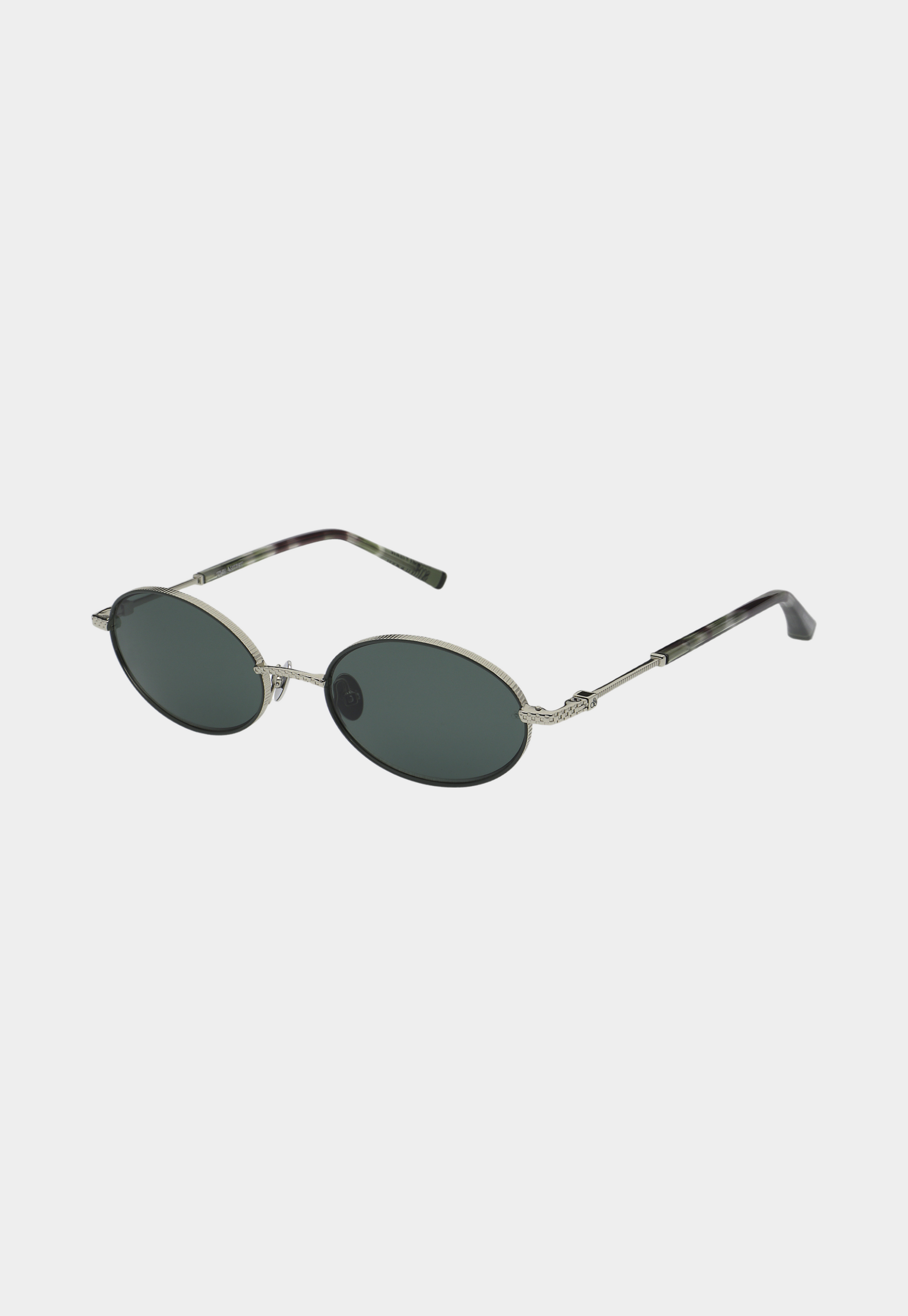 משקפי שמש לנשים מבית המותג סקוצ' אנד סודה. בעיצוב אובלי עם מסגרת מתכת דקה בגוון כסף ועדשות כהות להגנת UV שילוב של מראה וינטג' עם טאץ' יוקרתי ועדכני