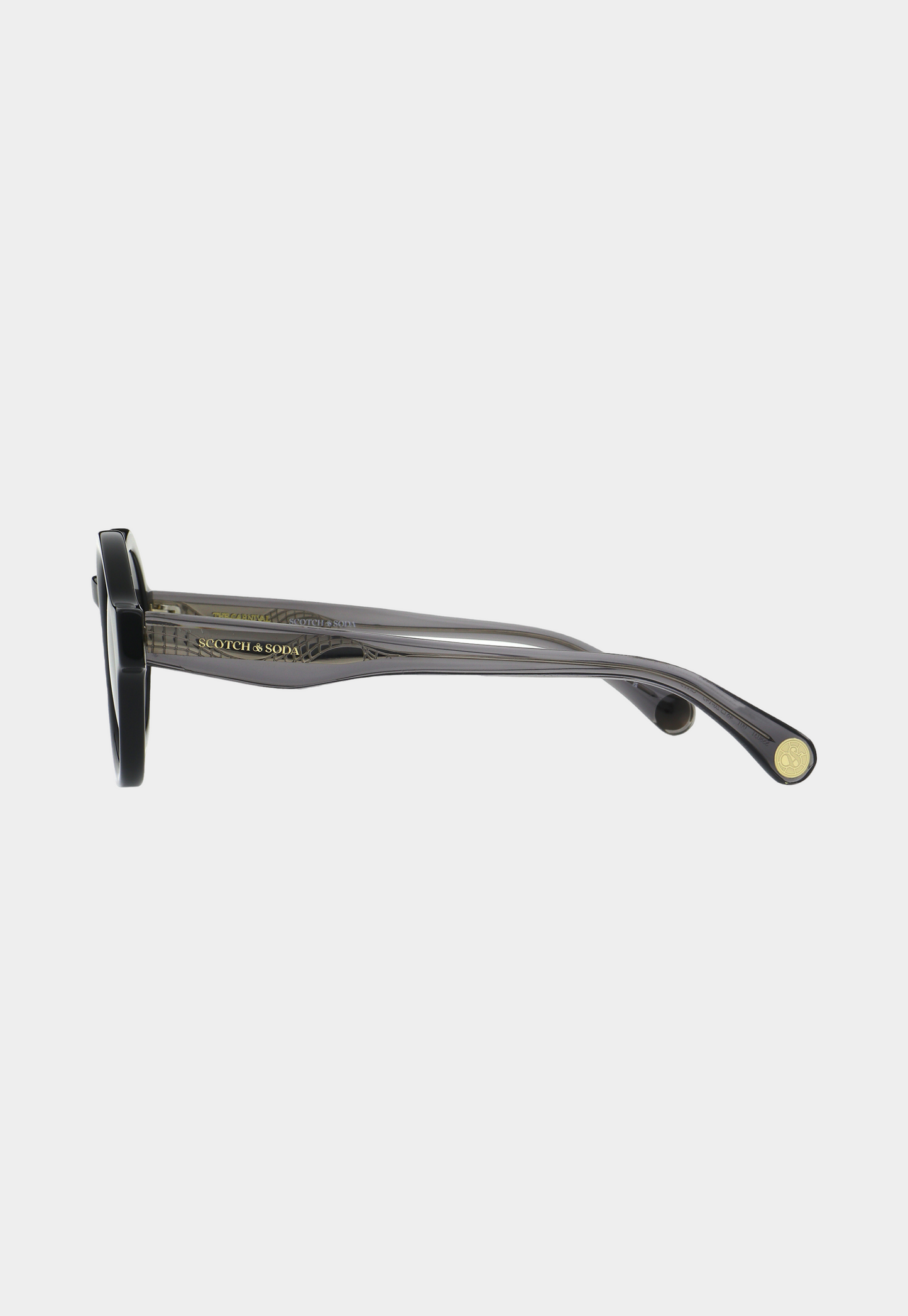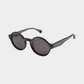 עיצוב עגול וייחודי עם מסגרת שחורה ועדשות כהות, המעניק מראה וינטג' מודרני עם קריצה אופנתית ובולטת.
