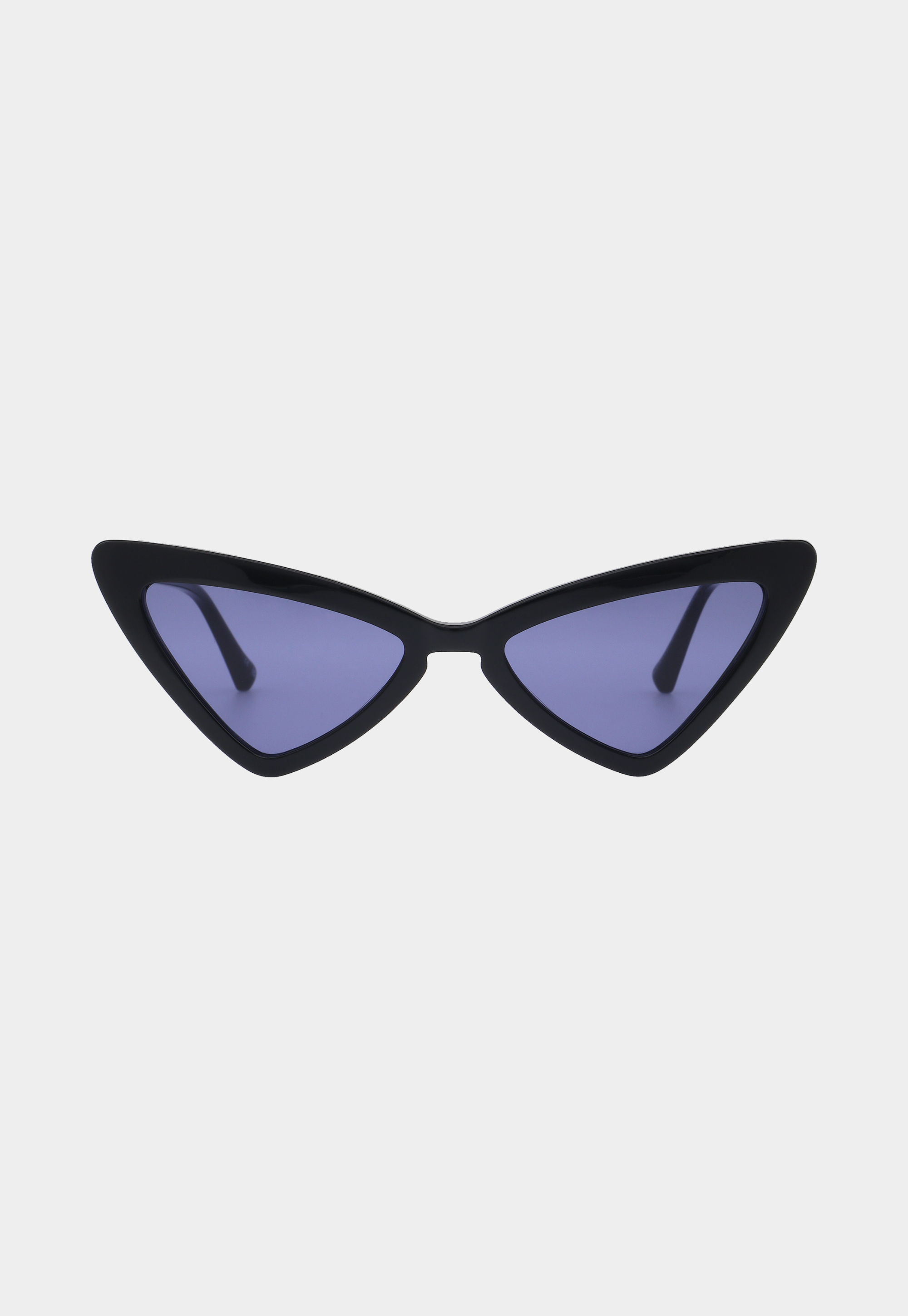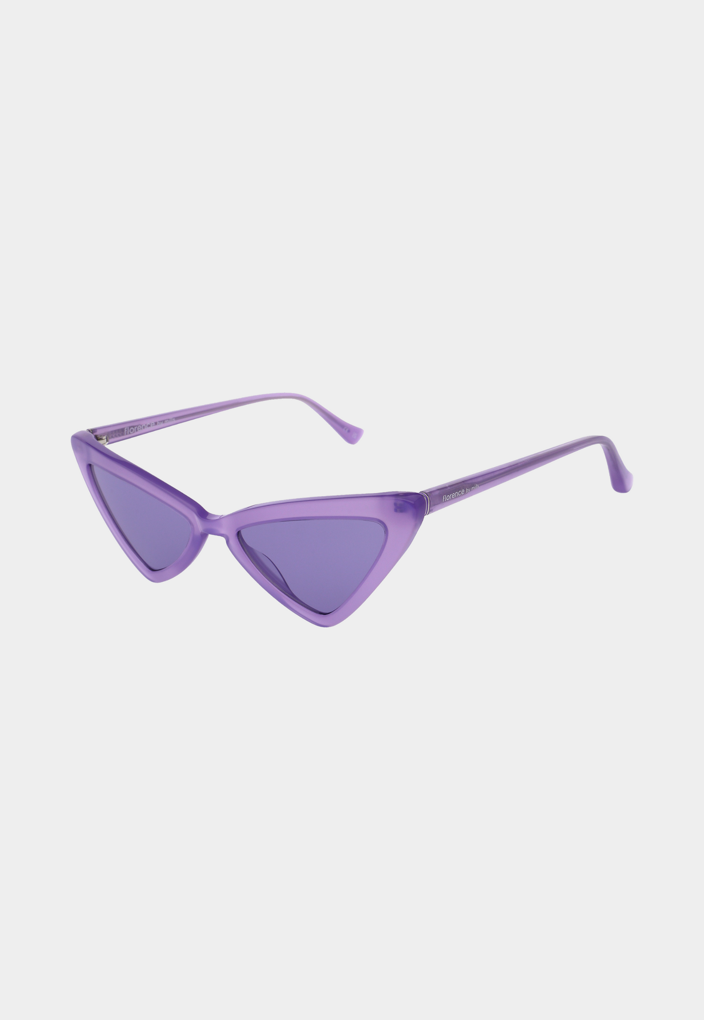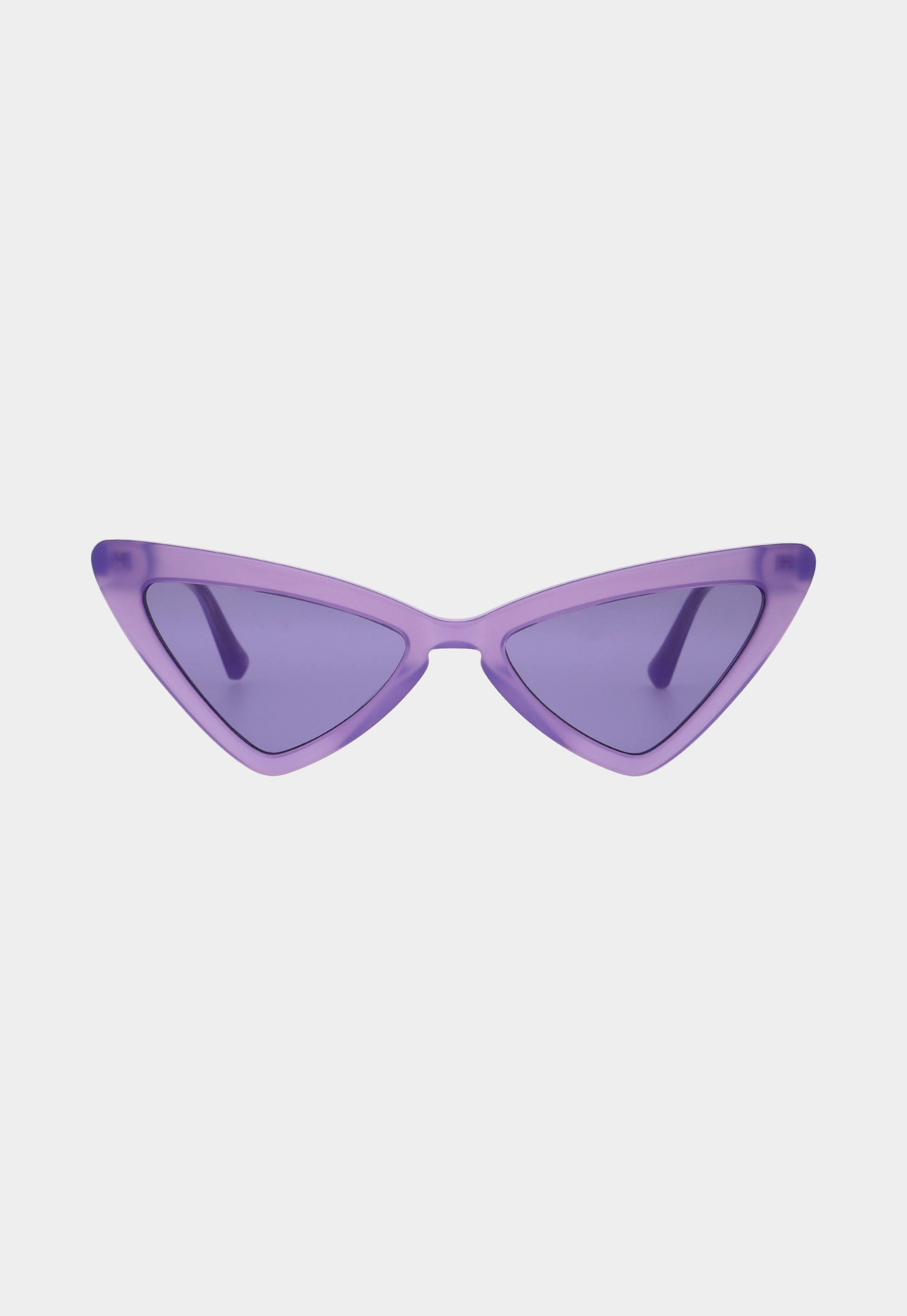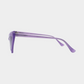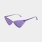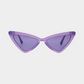 משקפי שמש בעיצוב חתולי וחד עם מסגרת סגולה בגימור מבריק.