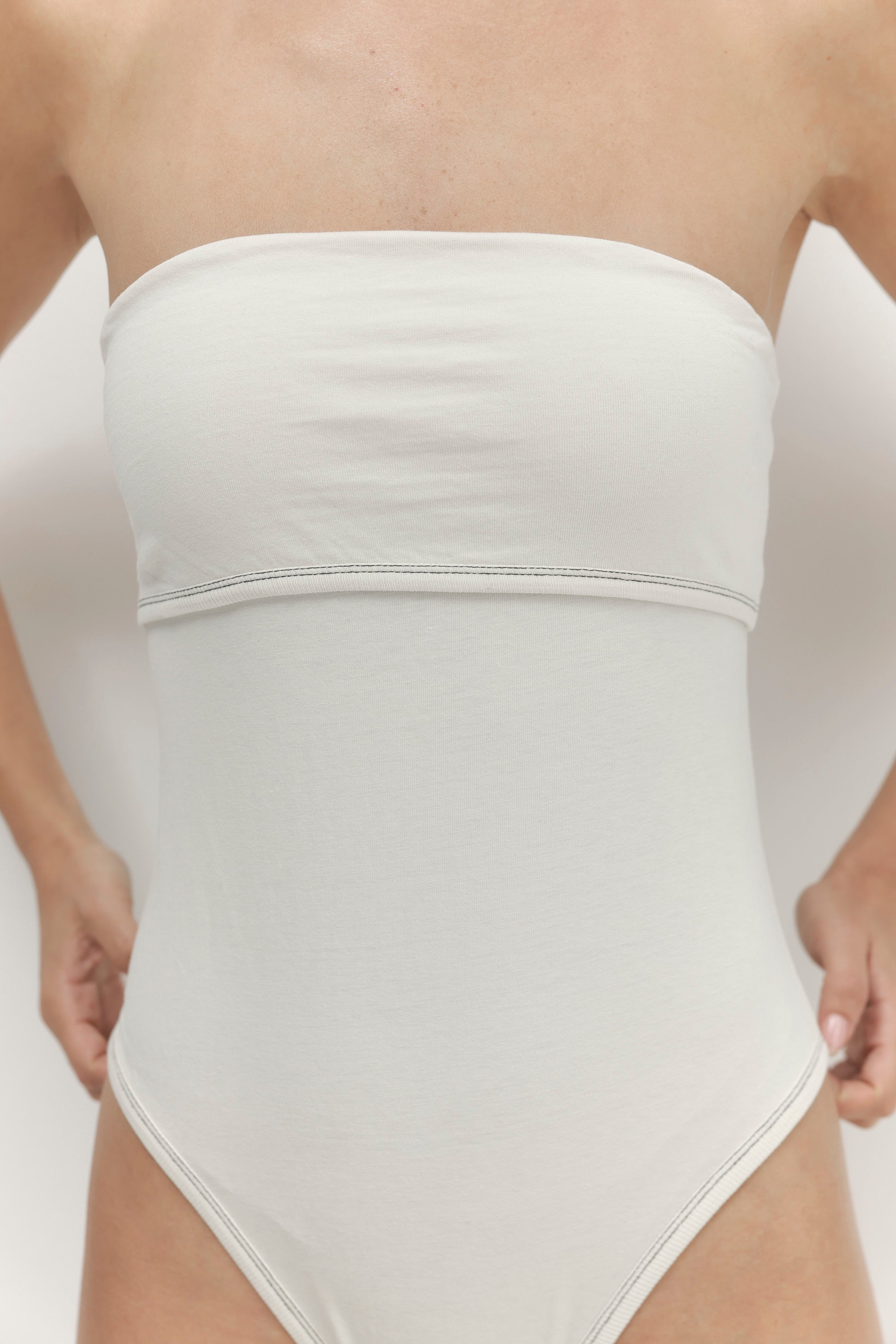 בגד גוף ללא כתפיות מבד, 100% כותנה נעימה עם תיפורים קונטרסטיים.