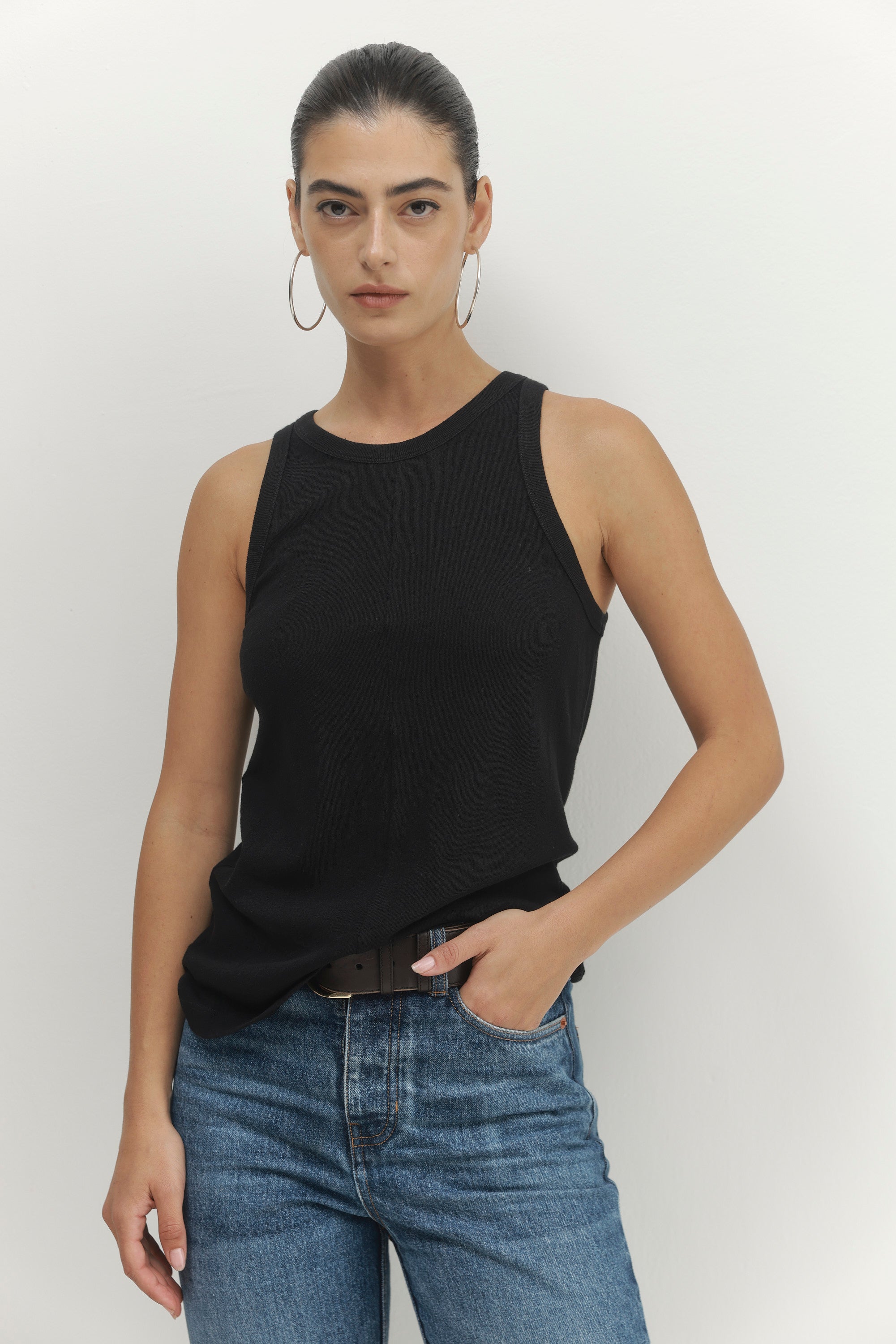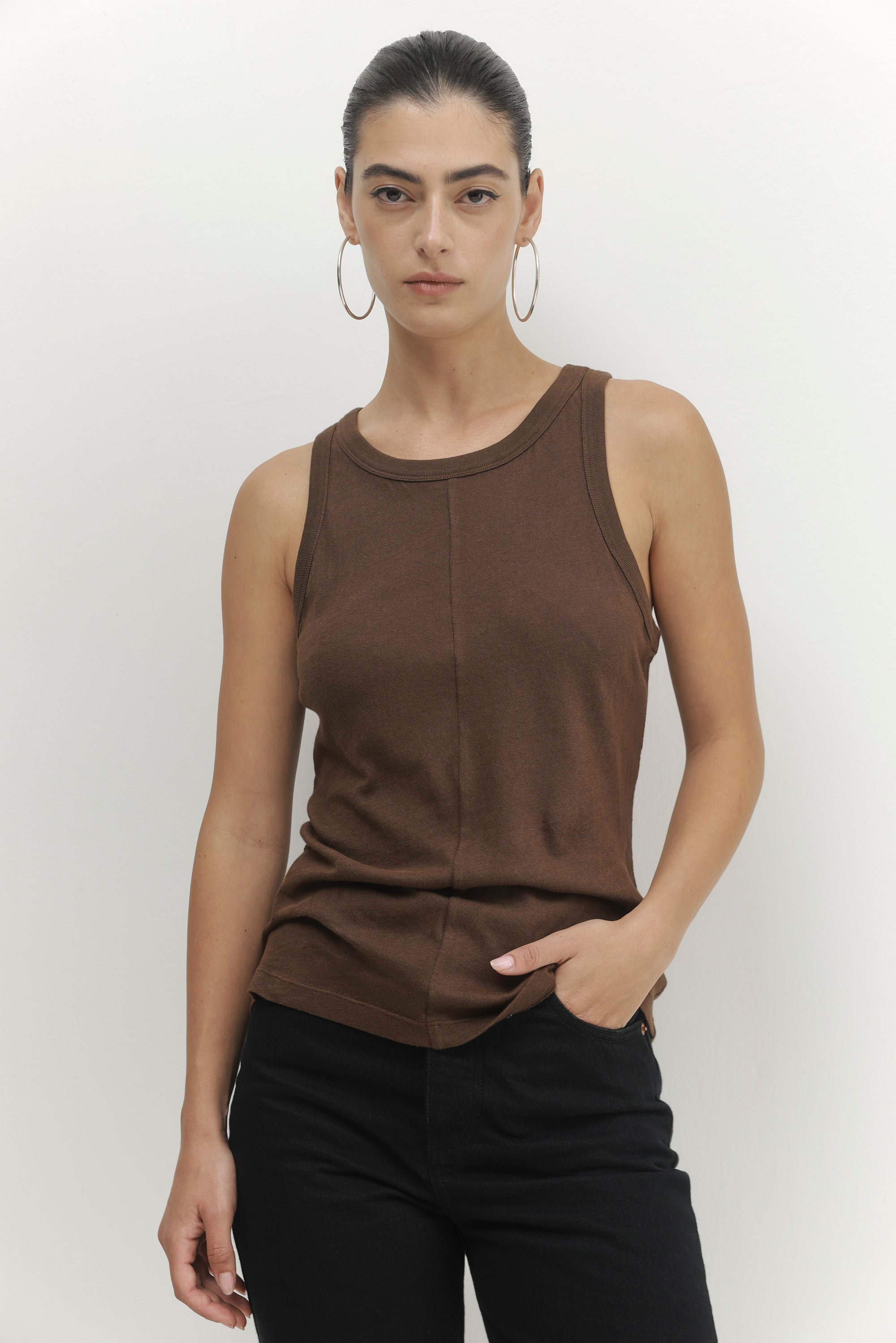 גופיית סריג מבד עדין ונעים עם תפר קדמי מתאימה ליום וערב.