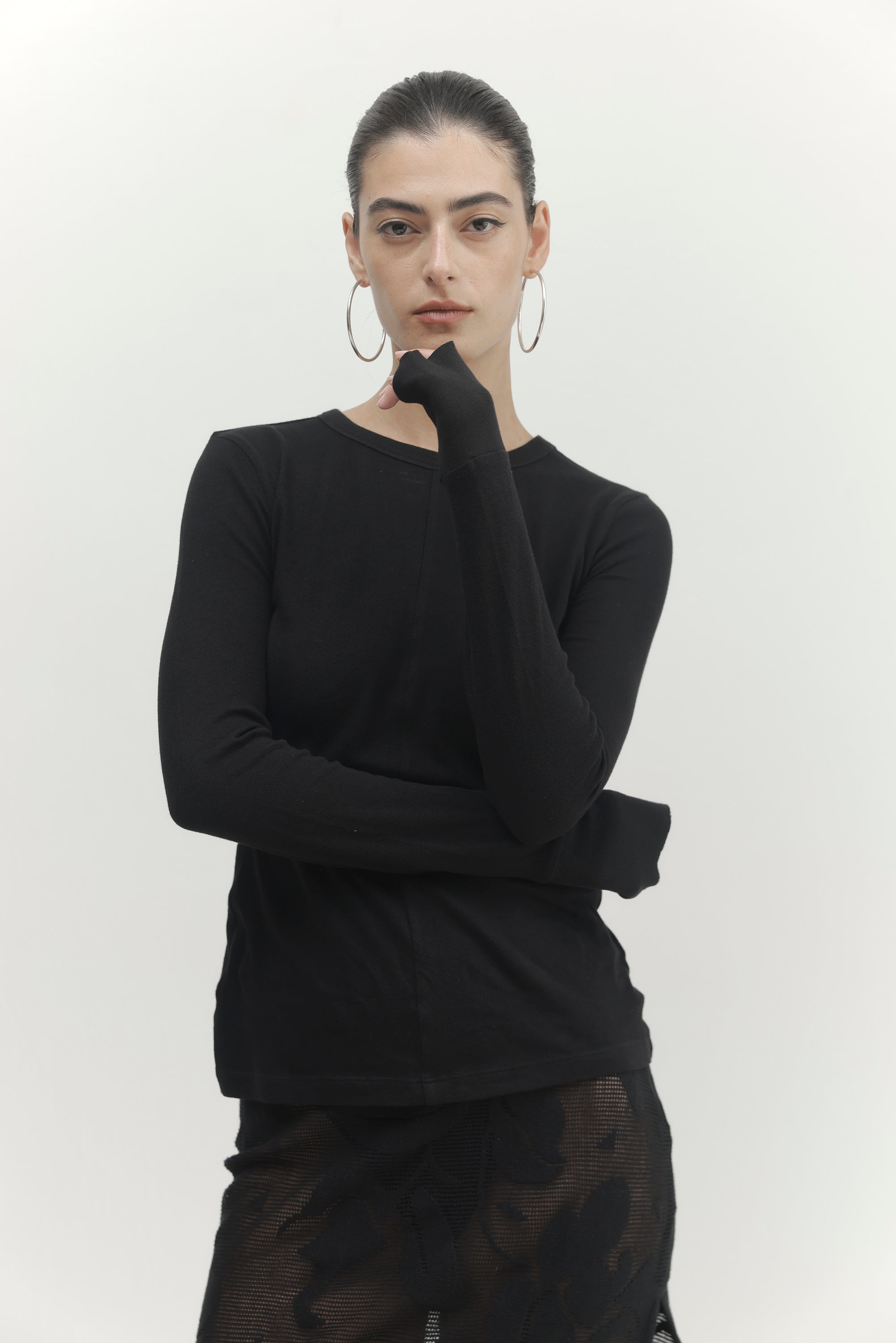חולצת סריג מבד עדין ונעים עם תפר קדמי ושרוולים ארוכים מתאימה ליום וערב.