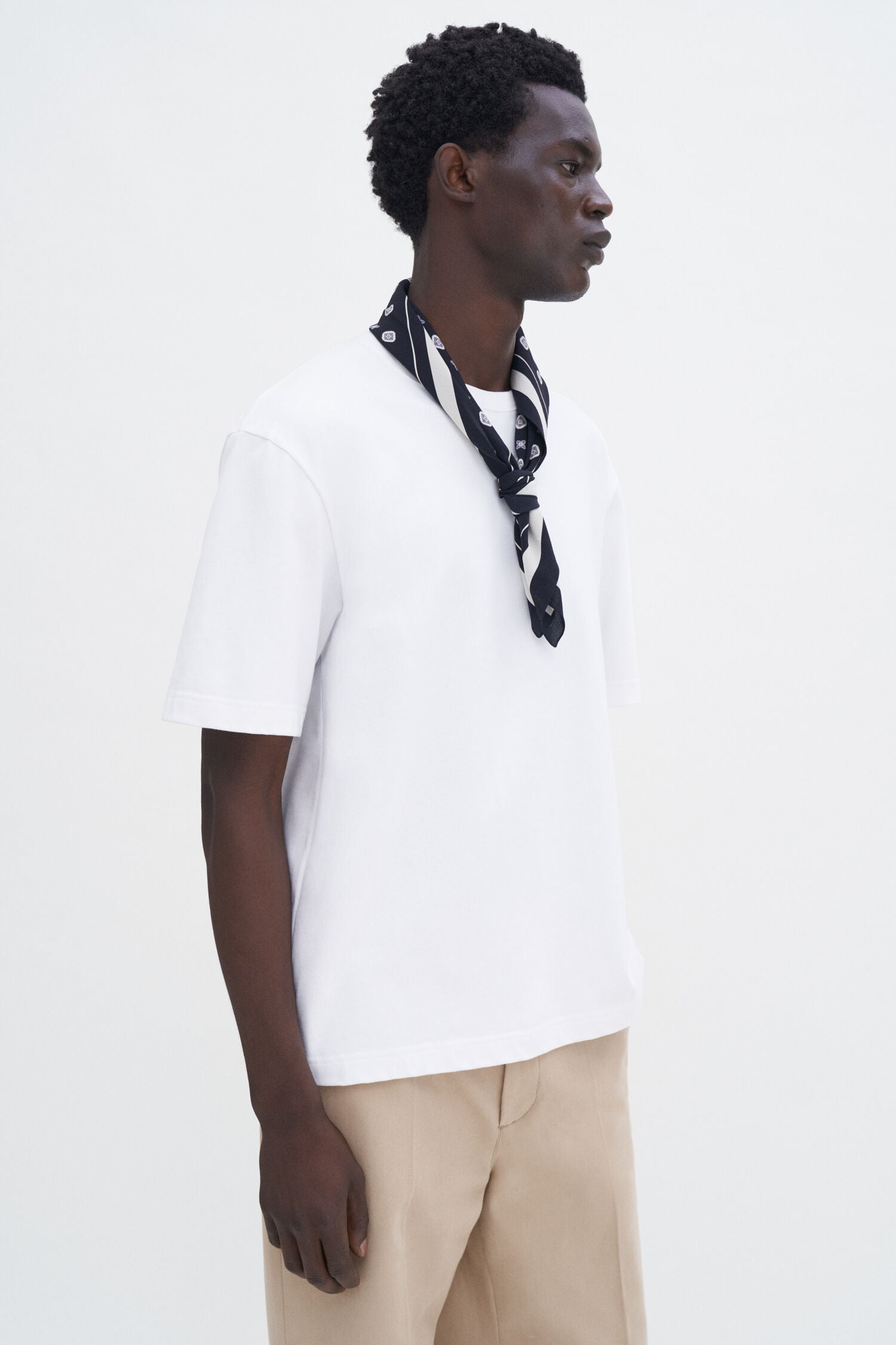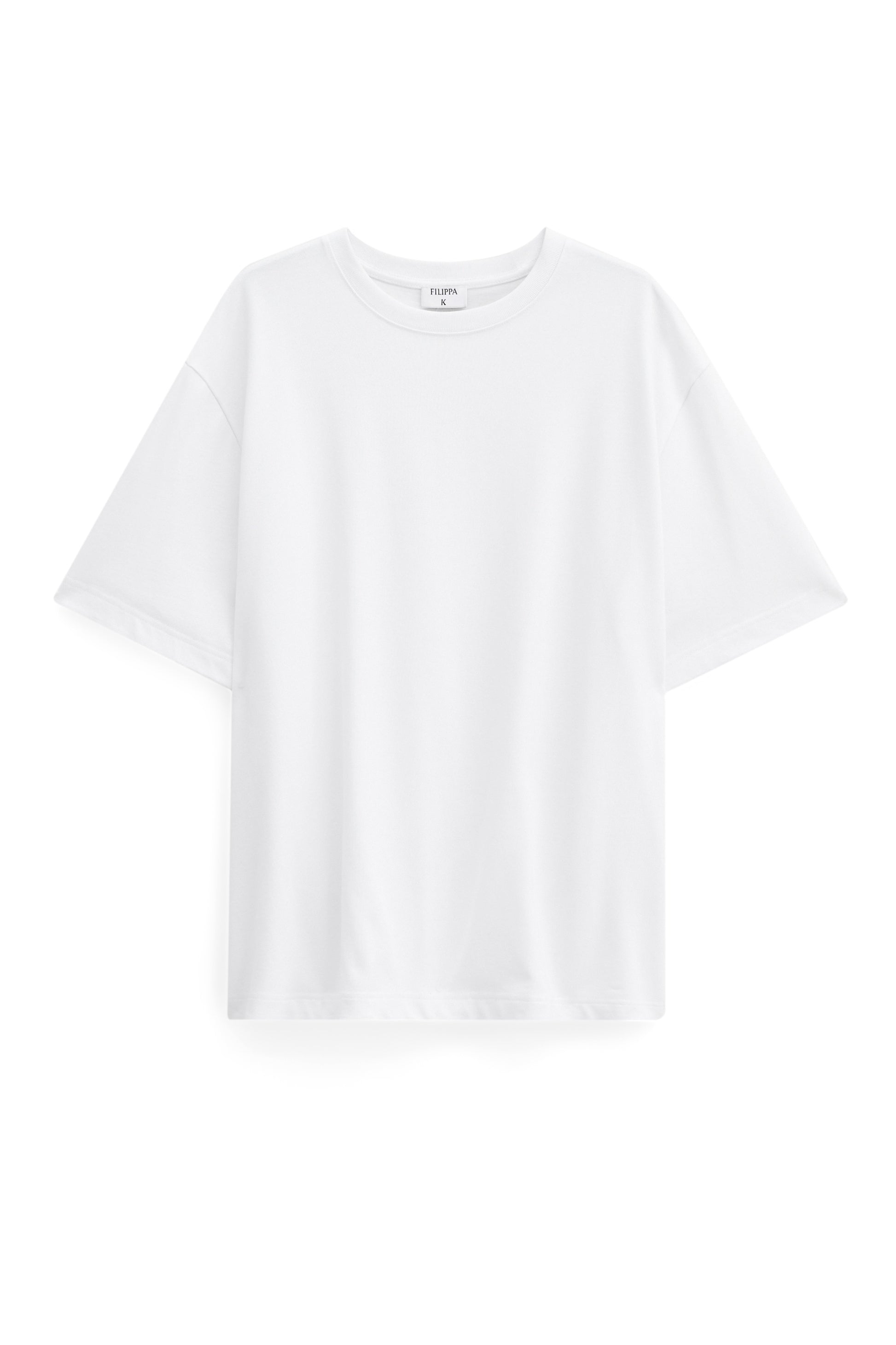 טי שירט קצרה לגברים מבית המותג פליפה קיי. החולצה מבד כותנה ג'רזי עבה, בגזרה משוחררת, עם מפתח עגול ושרוולים קצרים.
