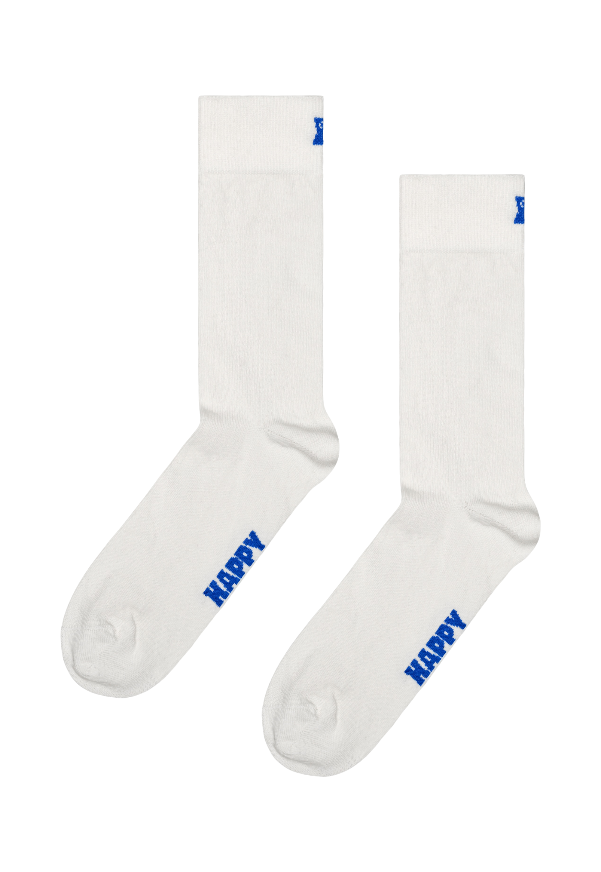 זוג גרביים חלקים של הפי סוקס. עשויים מכותנה בתוספת לוגו המותג בצבע כחול.
