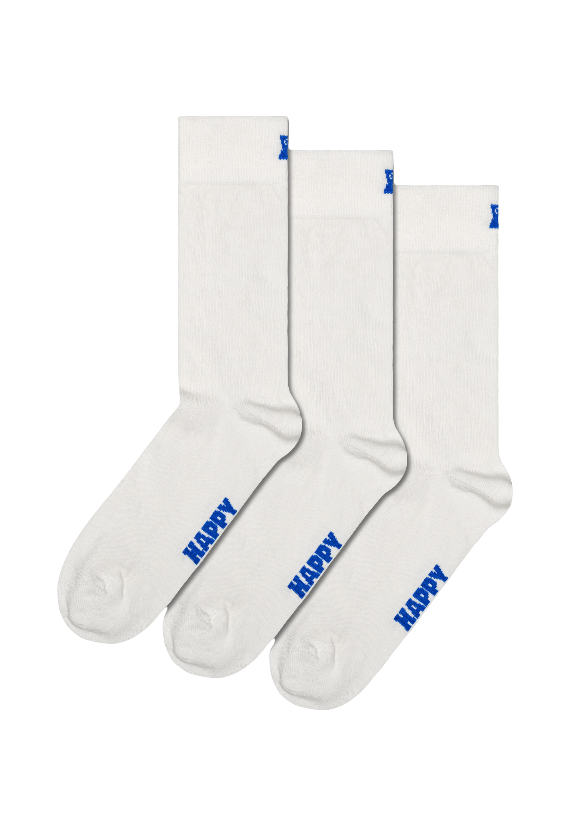 מארז 3 זוגות גרביים גבוהות מבית המותג האפי סוקס. בשילובי הדפס כחול של לוגו המותג.