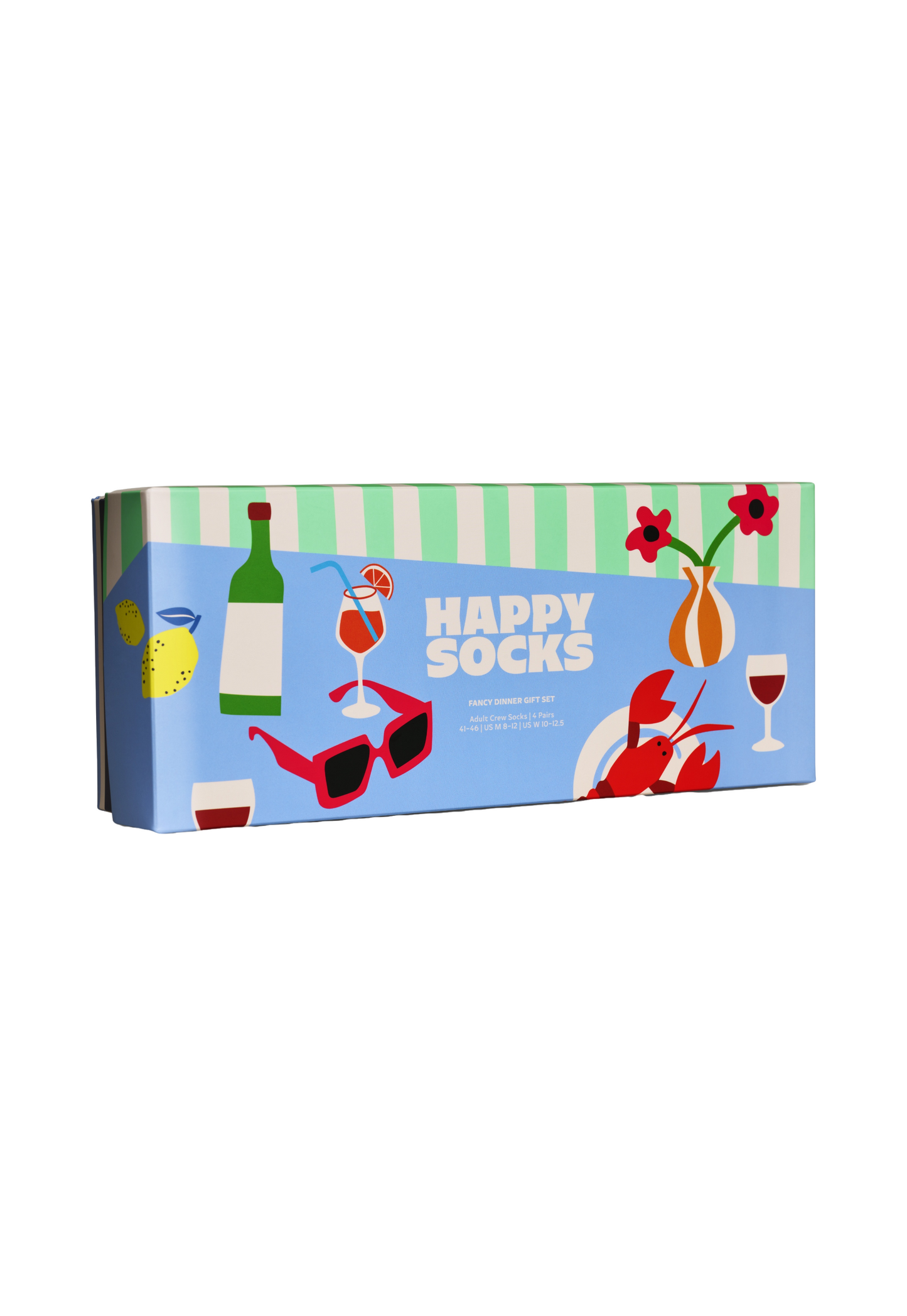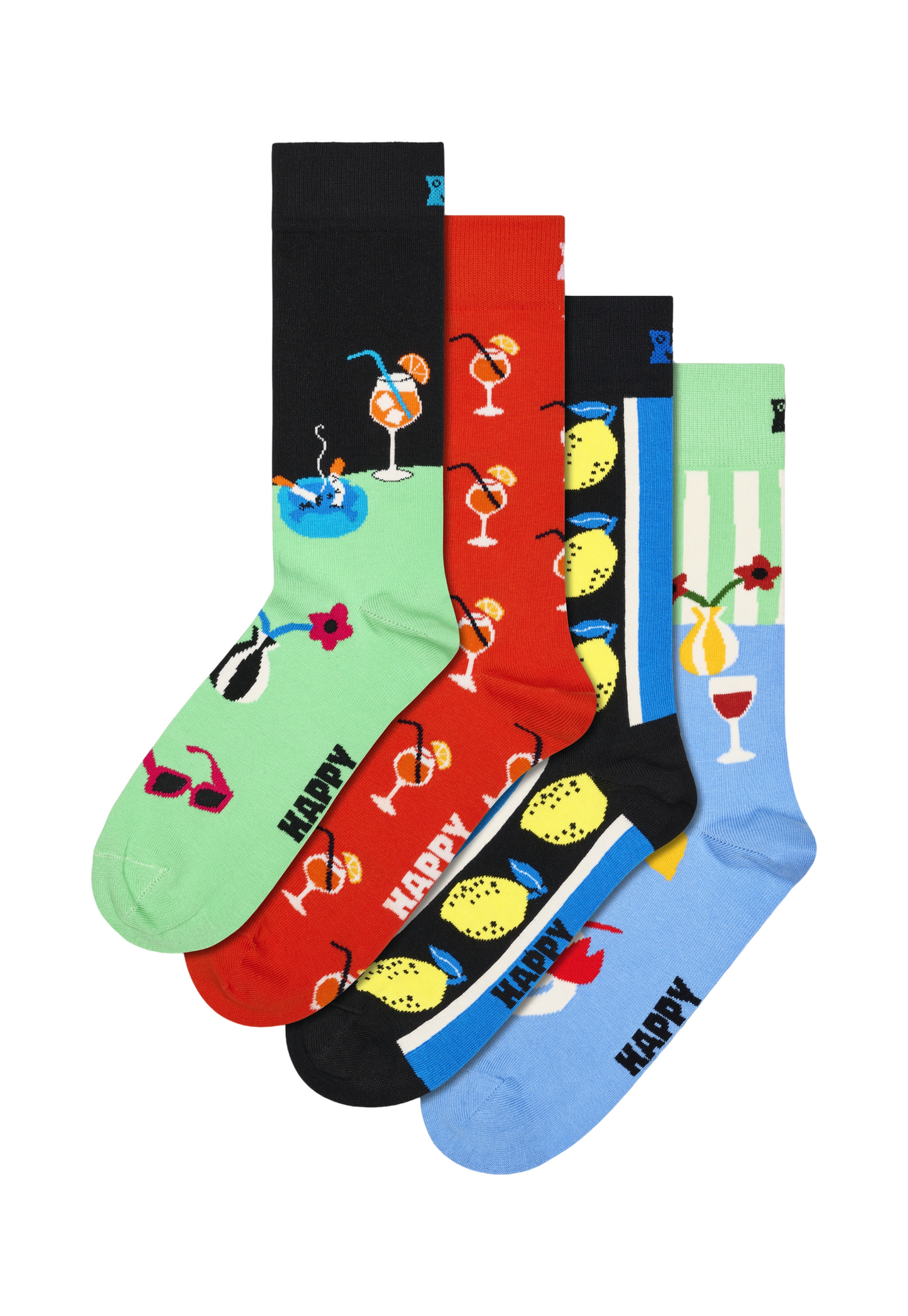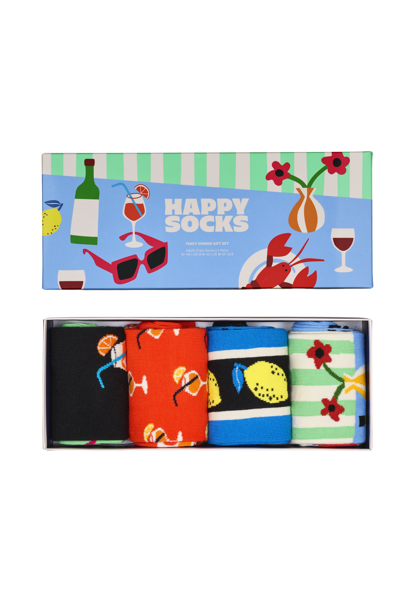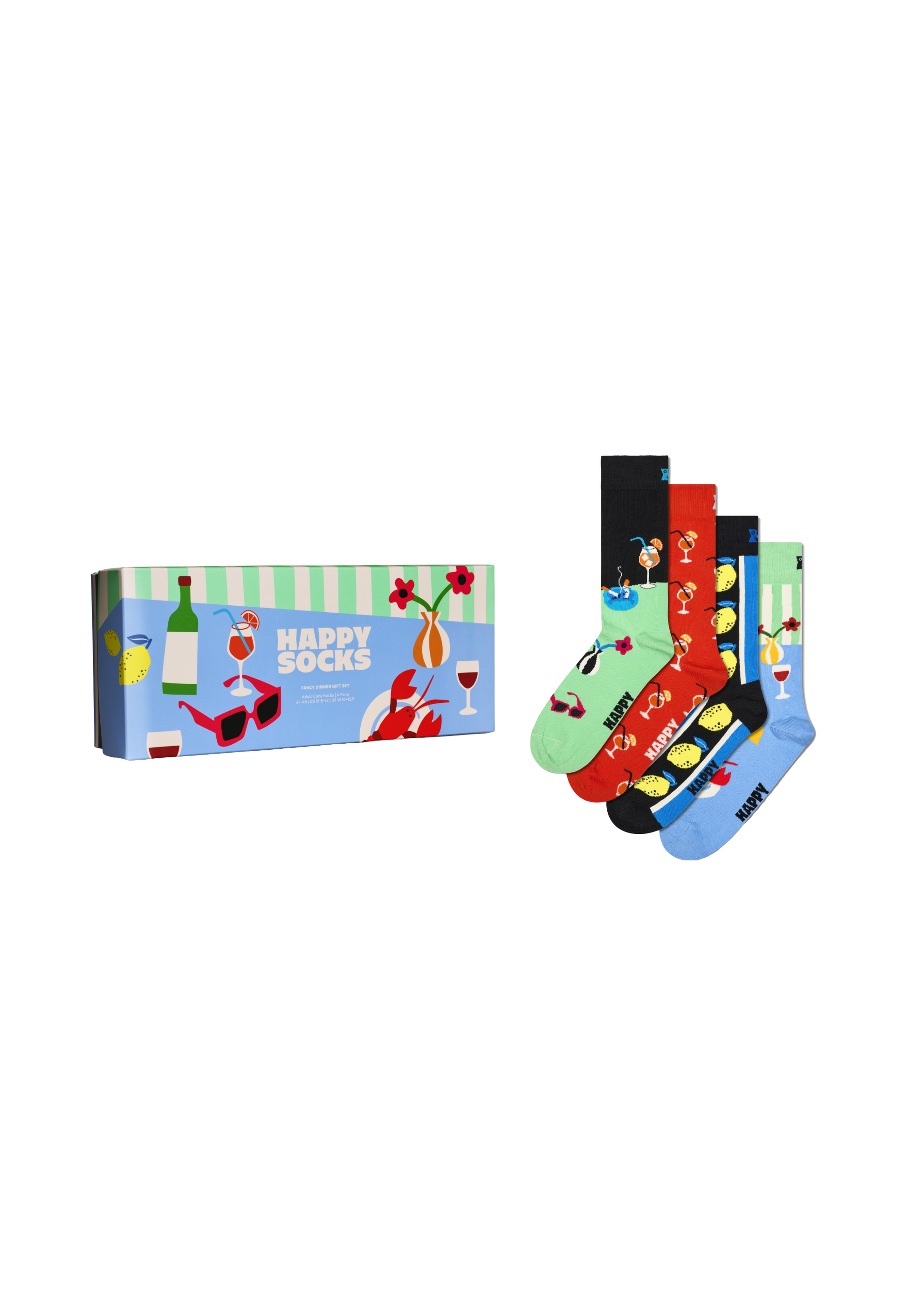 מארז ארבעה זוגות גרביים מבית המותג האפי סוקס. בהדפסי ארוחת ערב.