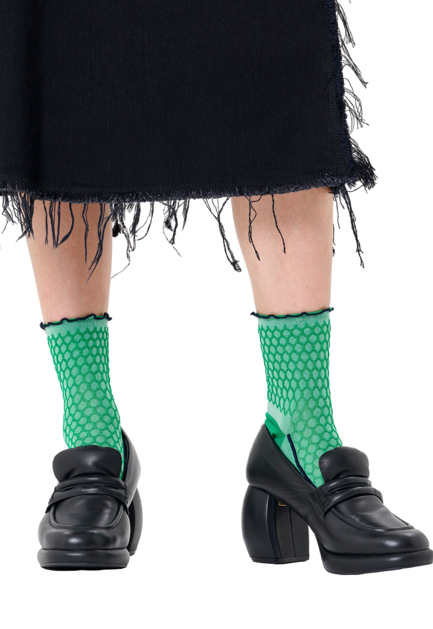 זוג גרביים צבעוניים של הפי סוקס. עשויים מכותנה, באורך מקוצר, בתוספת סיומת מסולסלת שמעניקה אפקט נשי וייחודי .